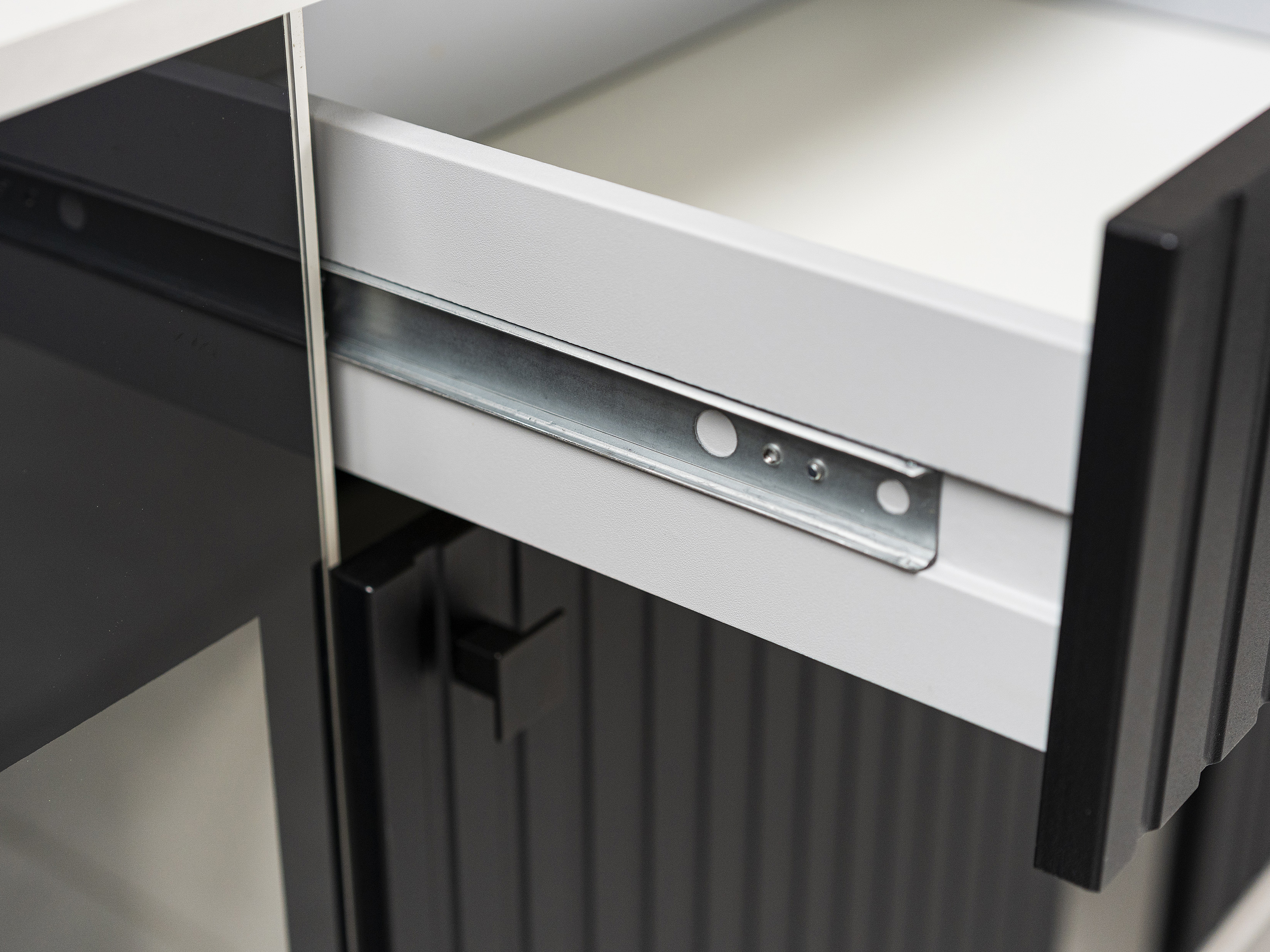 Laminovaná doska (15 mm) (melamín) + Zadná strana: HDF čierna (2,5 mm)