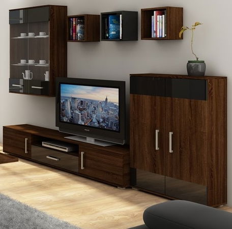 Obývacia stena Scotty Sonoma tmavá + Lesk čierny