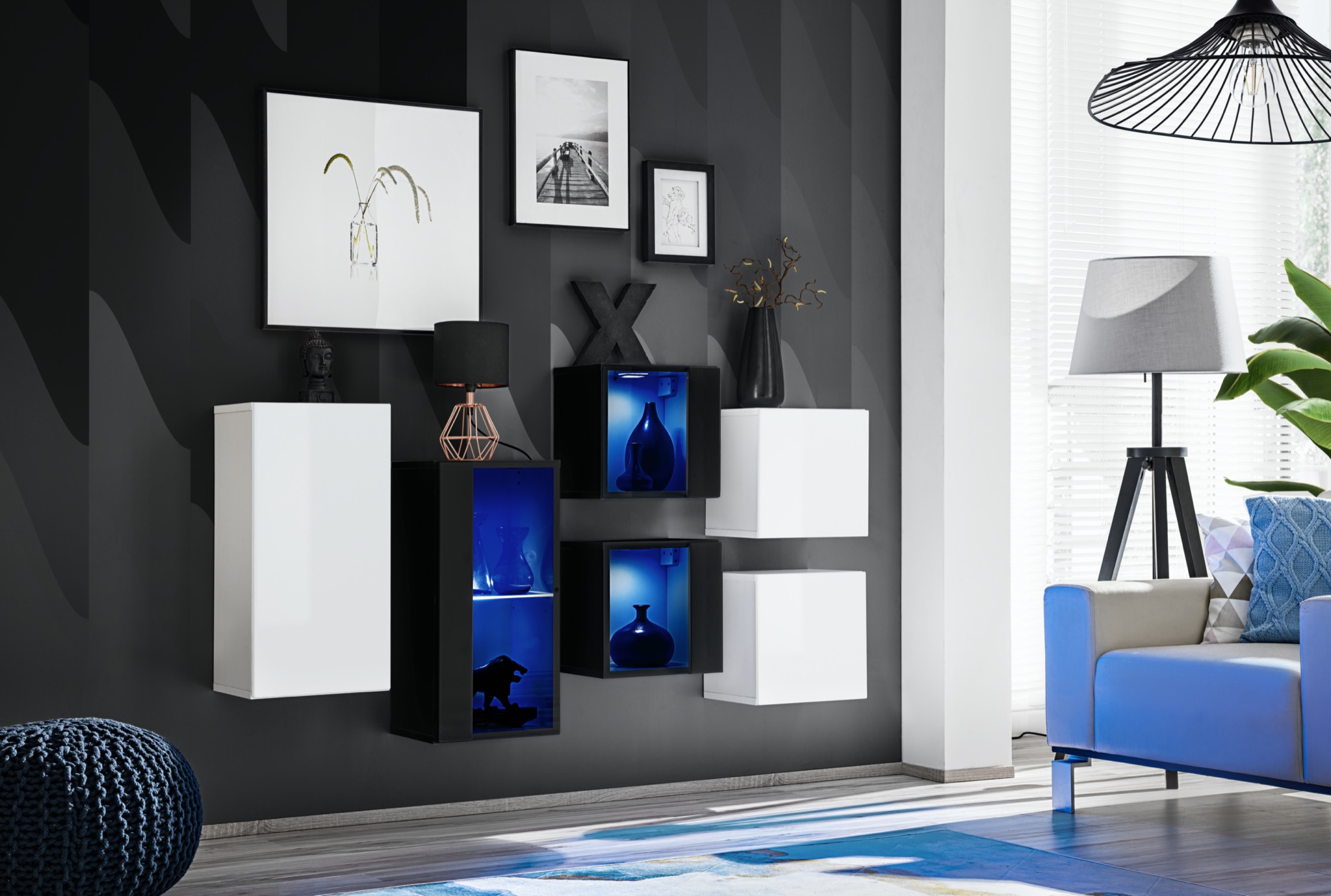 Obývacia stena Shelly 26 WS SW SB4 (biela matná + biela lesklá + čierna matná + čierna lesklá)