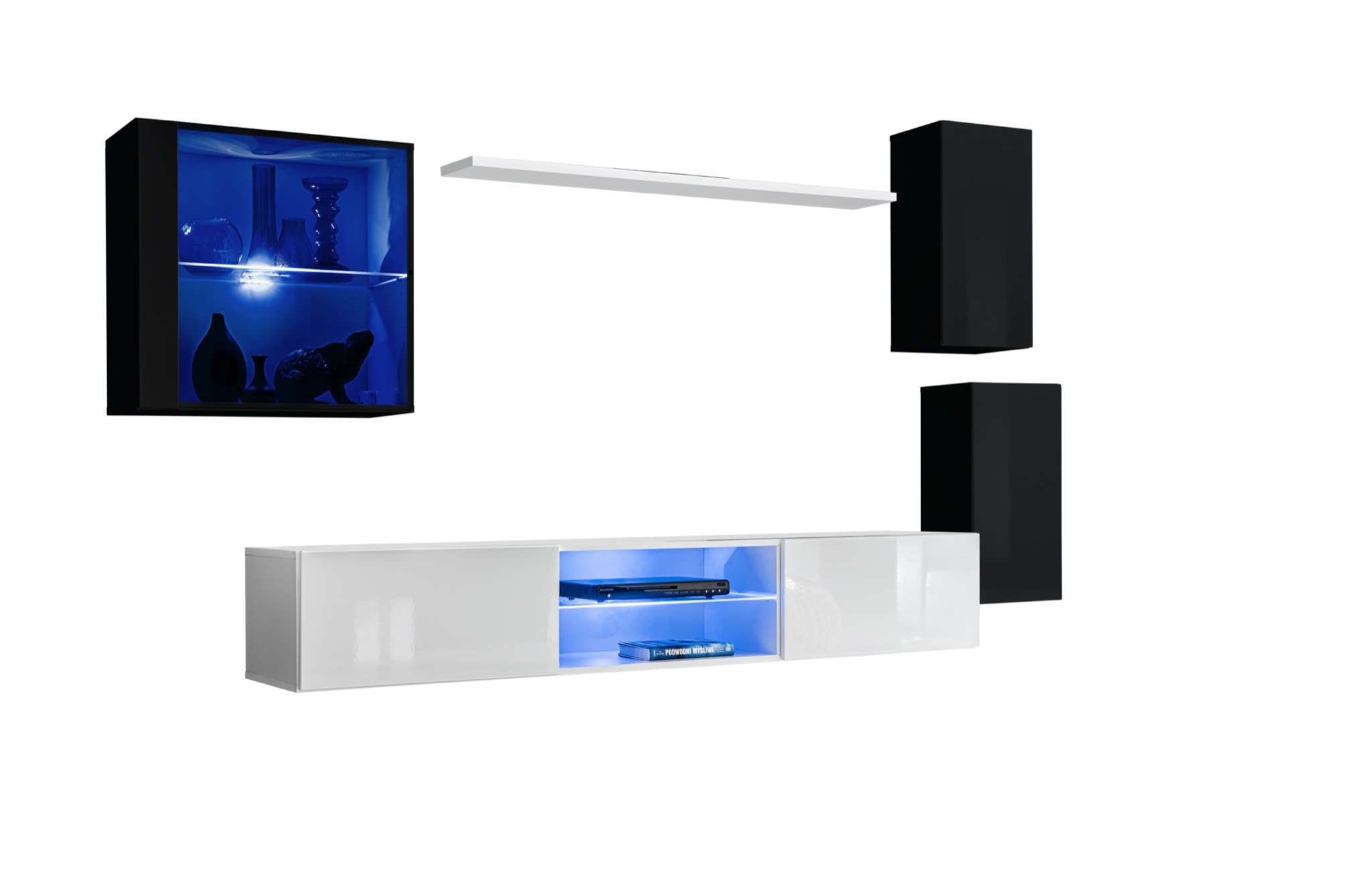 Obývacia stena Shelly 26 ZW WS 23 (čierna matná + čierna lesklá + biela matná + biela lesklá)