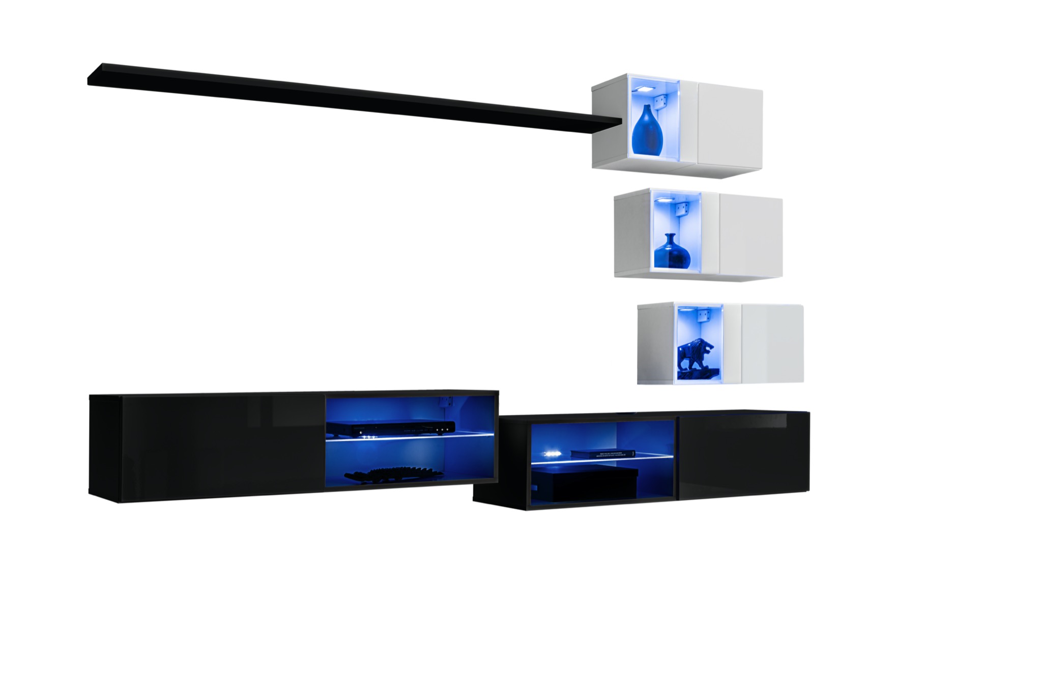 Obývacia stena Shelly 26 ZW WS 24 (čierna matná + čierna lesklá + biela matná + biela lesklá)