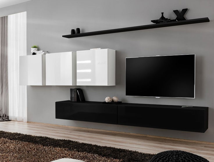Obývacia stena Storth 26 ZW SW 7 je moderný a elegantný nábytok, ktorý dodá Vašej obývačke štýlový vzhľad. Otváranie dverí je riešené push-click systémom a môžete ich namontovať na ľavú alebo pravú stranu. ABS hrany chránia nábytok pred mechanickým poškodením a zaisťujú dlhú životnosť. Súčasťou steny je skrinka na stenu, TV stolík/skrinka a polička. Rozmery skrinky na stenu sú 60 x 60 x 30cm, TV stolík/skrinka má rozmery 40 x 120 x 30 cm a polička 2,2 x 120 x 20 cm. Stena je k dispozícii v bielom matnom s lesklými bielymi detailmi alebo v čiernom matnom s čiernymi lesklými detailmi. Balenie obsahuje 7 balíkov s rozmermi š/v/h: 138x40x8 cm/21 kg, 138x40x8 cm/21 kg, 129x22x3 cm/4 kg, 129x22x3 cm/4 kg, 78x62x8 cm/15 kg, 78x62x8 cm/15 kg a 78x62x8 cm/15 kg.
