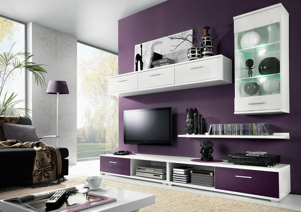 Obývacia stena Tahiti (biela + fialová) 101303 *výpredaj