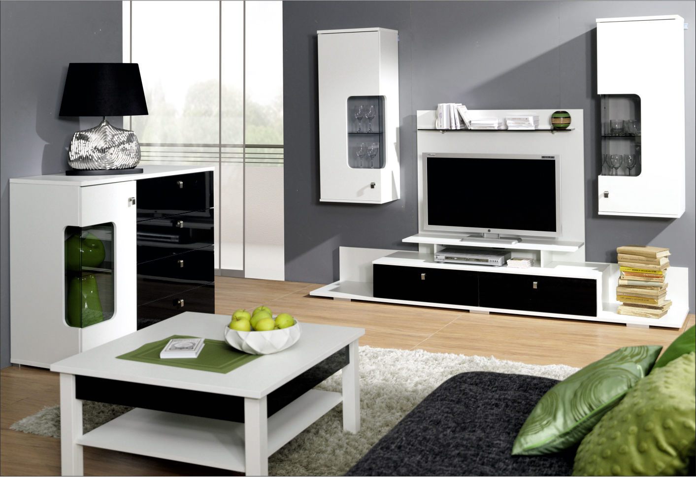 Jednoduchá no atraktívna obývacia stena Tom I Vám zaručene spraví z obývacej izby moderný priestor. Dve závesné vitríny, TV skrinka s panelom a poličkou, Vám ponúkajú potrebný priestor na uloženie vecí. Ak by Vám to bolo málo, môžete si priobjednať praktickú vitrínu so zásuvkami a pre doladenie celej zostavy nájdete u nás v ponuke aj konferenčný stolík z rovnakej série. Farebné prevedenie je v bielej matnej s čiernym leskom.