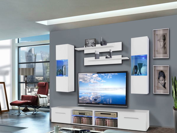 Jednoduchý a moderný dizajn obývacej steny je doplnený o systém push-click, ktorý je využitý pri vitríne. Obývacia stena je doplnená o LED podsvietenie.