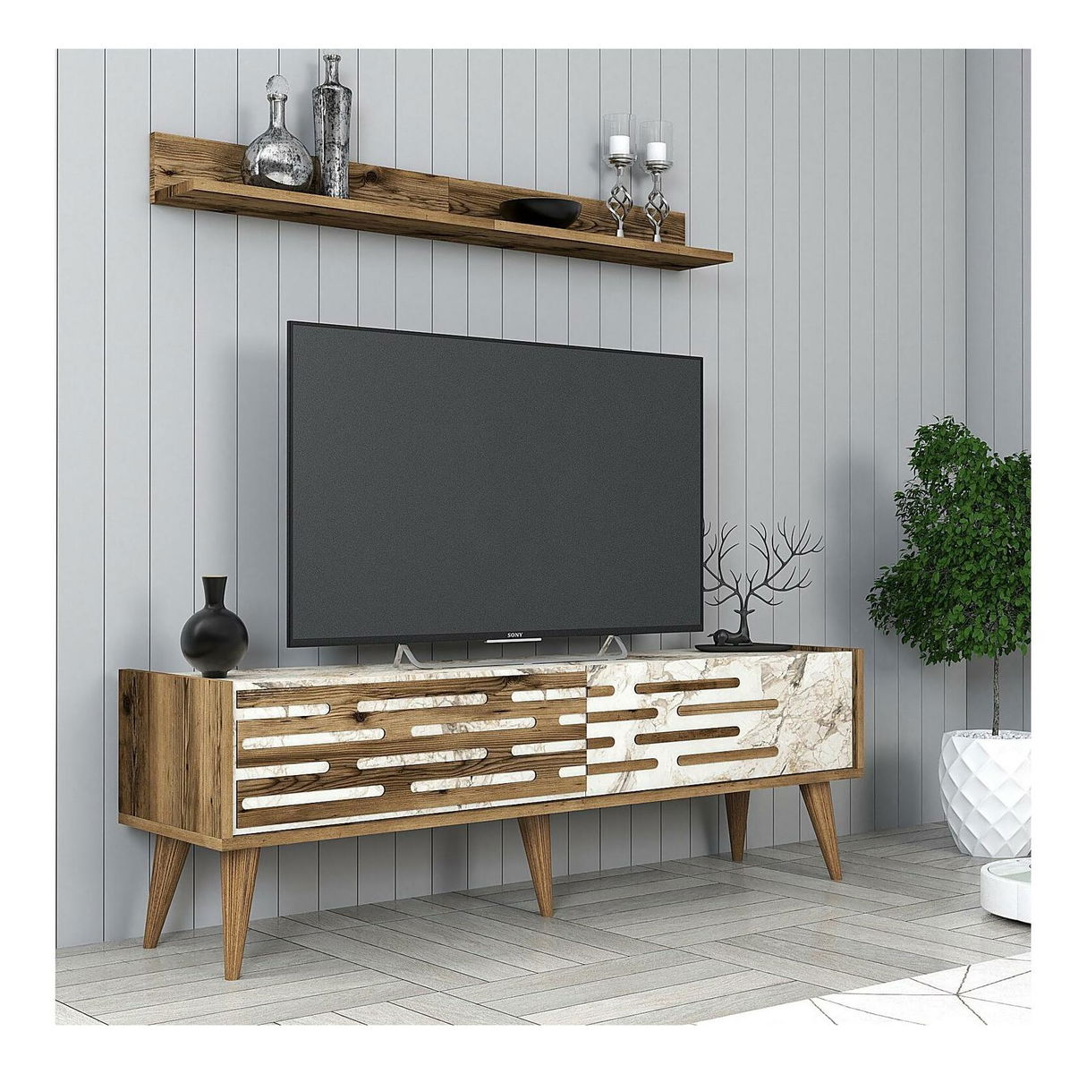 hrúbka: 18 mm, veľkosť TV stojana: šírka: 140 cm, výška: 35 cm, hĺbka: 45 cm, veľkosť nástennej police: šírka: 120 cm, výška: 16 cm, hĺbka: 11,8 cm