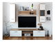 Moderná a praktická obývacia stena s jednoduchším, ale všestranným dizajnom, ktorý sa dá kombinovať s inými prvkami. Komponenty obývacej steny sú: Tv stolík, polička na stenu, skrinka na stenu a vitrína na stenu. Komponenty sú vyrobené z fóliovanej drevotriesky. Farebné prevedenie obývacej steny je dub wotan v kombinácii s bielou.