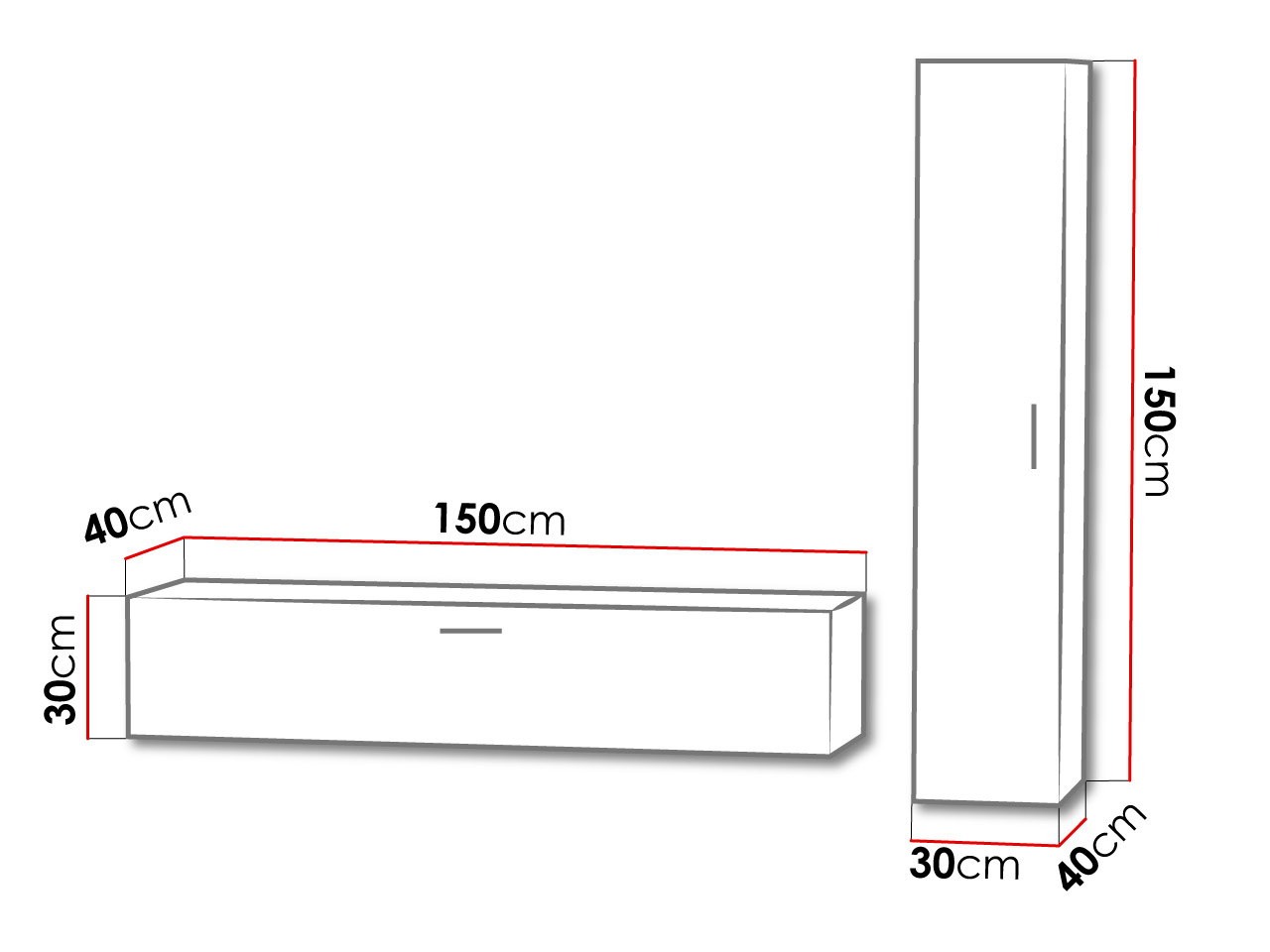šírka: 30 cm, výška: 150 cm, hĺbka: 40 cm