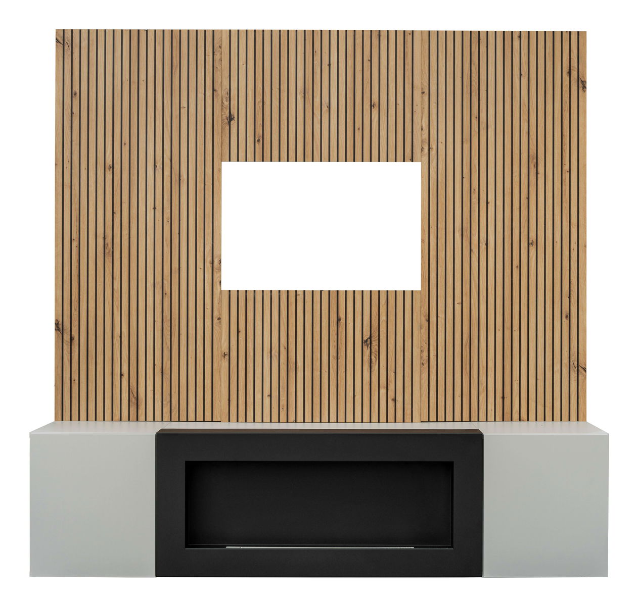 Obývacia stena Xavus L2-K (perla grey + dub artisan) (s bio krbom)