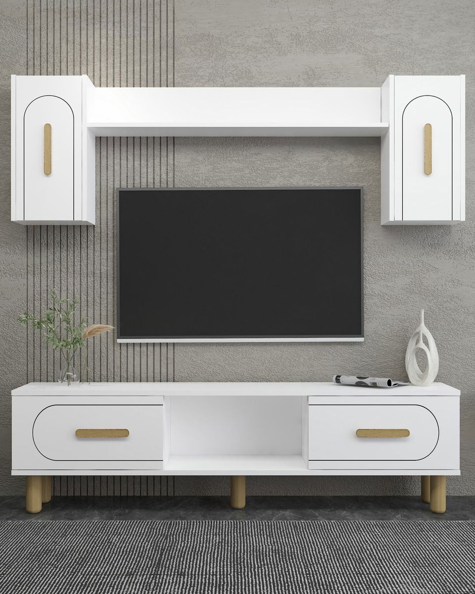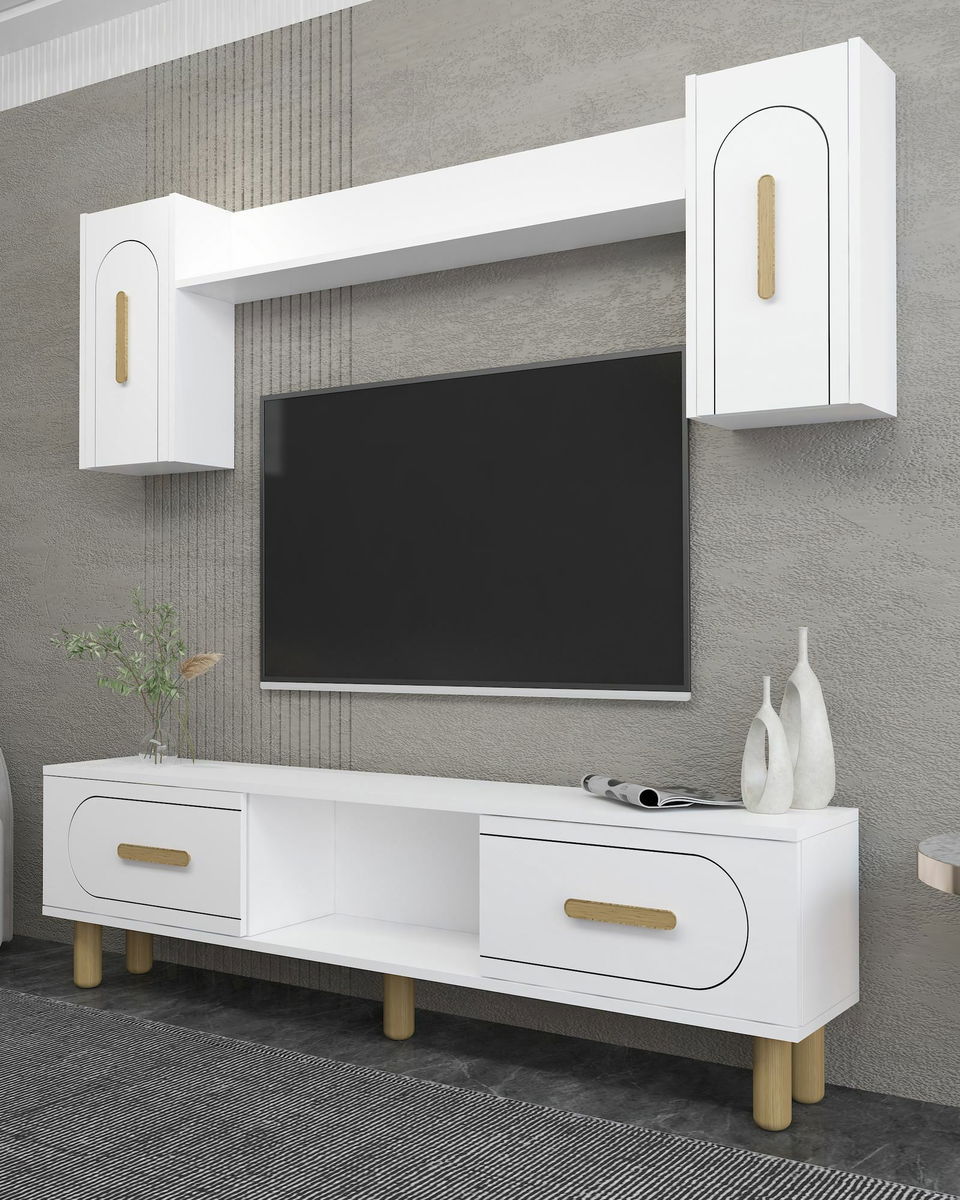 Obývacia stena Yosua (biela + dub zafírový)