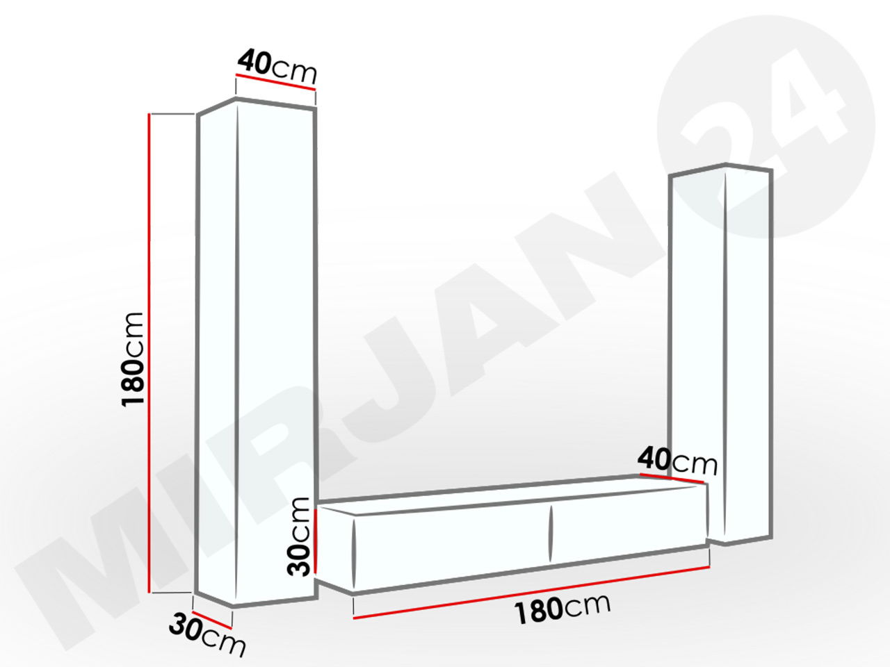 Obývacia stena je ideálnou voľbou pre tých, ktorí hľadajú pohodlie a štýl. Uvedená cena zahrňuje nasledujúce komponenty: Vitrína 180: šírka: 40 cm, výška: 180 cm, hĺbka: 30 cm x 2 , TV Skrinka : šírka: 180 cm, výška: 30cm, hĺbka: 40cm. Celkový rozmer: šírka: 260 cm výška: 180 cm hĺbka: 40 cm Farby: možnosť výberu farieb tu Vyrobené: korpus – laminovaná drevotriesková doska v mate, dvierka – doska MDF vo vysokom lesku, systém otvárania "PUSH TO OPEN", v cene zostavy nie je konferenčný stolík, ktorý je vyobrazený na ilustračnej foto. Záručná doba: 24 mesiacov