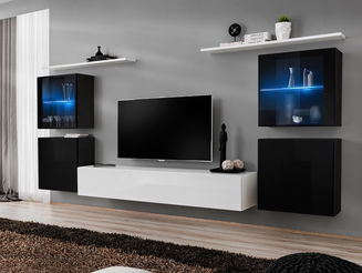 Moderná obývacia stena má pôsobiť vzdušne a má zaberať maximálne 2/3 dĺžky steny. Najbežnejším typom modernej TV steny je tkz. zábavné centrum. Takáto stena dáva do popredia televízor, a tak je najdôležitejším prvkom celej zostavy práve TV skrinka alebo TV panel, na ktorom je televízor zavesený. Hlavným posolstvom moderného nábytku je hravá jednoduchosť. Takéto zábavné centrá obsahujú rôzne možnosti úložného priestoru a často ponúkajú kombináciu zásuviek, políc a uzavretých priečinkov vo vitrínach, skrinkách a regáloch. Príjemnú večernú atmosféru v obývačke docielite zakúpením skriniek alebo políc so zabudovaným úsporným LED osvetlením. Väčšinou bývajú osvetlené sklenené poličky vo vitríne, ale môžete si zvoliť aj bodové svetlo umiestnené v hornej poličke.