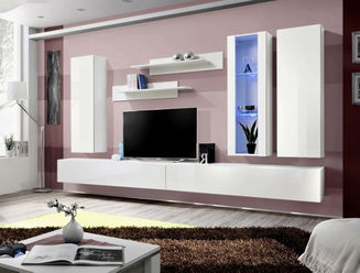 Obývacia stena Regine 20 PGS RB (perlovo sivá + sivý dub) (s osvetlením)