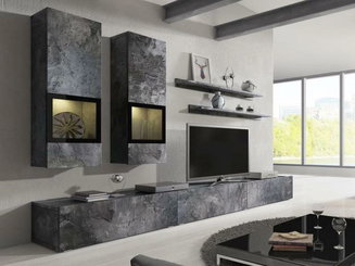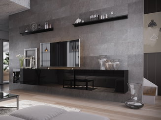 Obývacia stena Barly Typ 10 (čierna + svetlý betón)