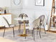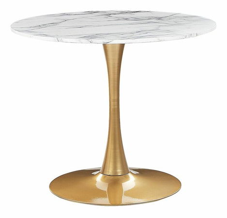 Vďaka jednoduchému tvaru je tento stôl dobrou voľbou do každého moderného, minimalistického alebo industriálneho interiéru. Vďaka použitiu kvalitných materiálov vhodných na časté používanie je mimoriadne odolný. Okrúhla stolová doska z MDF materiálu s mramorovým vzhľadom a štíhla kovová podnož vytvárajú dizajn, ktorý zaručí optimálne pohodlie pri používaní. Stôl možno doplniť stoličkami s podobným dizajnom a vytvoriť jedinečný priestor na rodinné stretnutia.