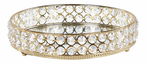 Tento elegantný podnos je praktickým a zároveň dekoratívnym doplnkom do každého glamour interiéru. Je vyrobený z kovu, má lesklé sklenené kamienky a zrkadlové dno, ktoré krásne odráža okolie. Je ľahký, takže ho môžete jednoducho premiestniť z jedného miesta na druhé. Použite ho v spálni na uloženie šperkov a iných drobností alebo v obývacej izbe ako štýlový doplnok.