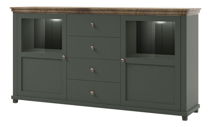 Okúzlujúci modelový rad Elvina vo vidieckom štýle. Príťažlivé farebné prevedenie v kombinácii tmavozelenej a dubu lefkas, vytvorí v interiéri pocit optimizmu a harmónie. Je ľahko kombinovateľný s prírodnými materiálmi.