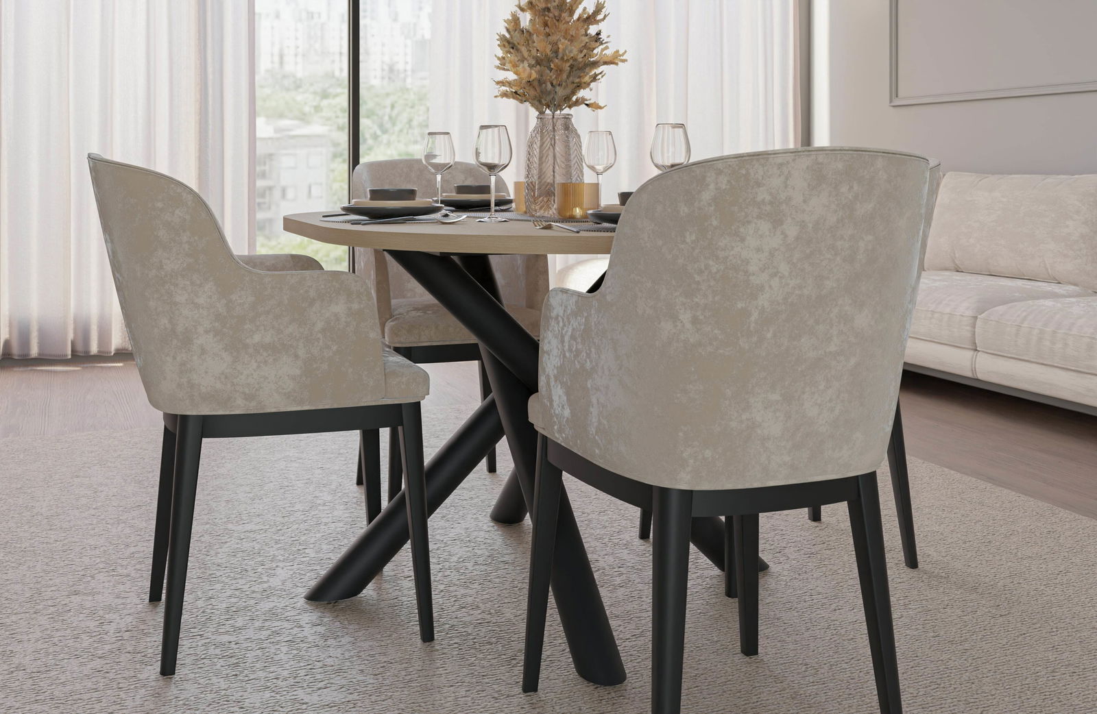 Jedálenský stôl je moderný a elegantný nábytok, ktorý bude skvelým doplnkom vášho domova. Poskytuje dostatok miesta pre celú rodinu alebo hostí. Kombinácia farieb dodáva stolu štýlový a sofistikovaný vzhľad, ktorý sa hodí do každého interiéru. Kvalitné materiály zaručujú dlhú životnosť a pevnosť tohto stola. Jeho jednoduchý ale elegantný dizajn robí perfektnú voľbu pre každého, kto hľadá kvalitný a moderný jedálenský stôl.