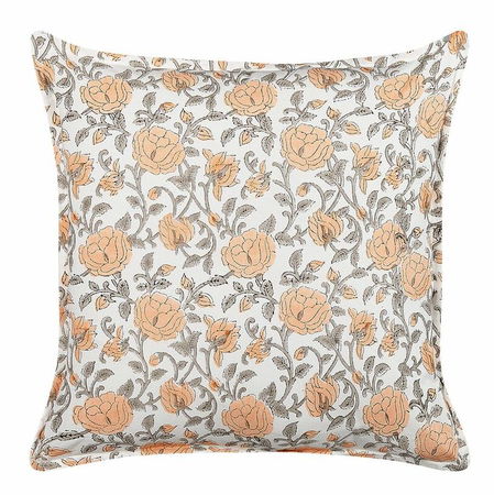 S týmto nádherným vankúšom v prírodnom dizajne oživíte vzhľad svojej obývacej izby alebo spálne. Má krásny kvetovaný vzor vyrobený špeciálnou technikou blokovej tlače. Vďaka kombinácii bielej, broskyňovej a sivej farby je očarujúcim doplnkom, ktorý rozjasní akýkoľvek priestor.