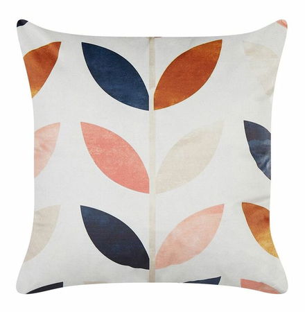 Tento vankúš skrášli akýkoľvek interiér zariadený v boho štýle. Je vyrobený zo zamatu, takže je veľmi kvalitný, odolný a jemný. Vďaka praktickému zipsu možno poťah jednoducho odstrániť a vyčistiť. Obe strany vankúša majú zaujímavý farebný vzor listov, ktorý kontrastuje so svetlým pozadím vankúša.