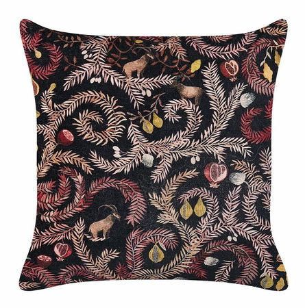 Ozdobte svoj domov jedinečným vankúšom s originálnym botanickým motívom v podmanivých tmavých farbách. Obliečka vankúša je vyrobená z kvalitných bavlnených vlákien a jej predná časť má na dotyk jemnú zamatovú textúru. Vďaka hrubej výplni je nielen dekoratívnym, ale aj praktickým doplnkom, ktorý využijete pri poobedňajšom oddychu.