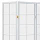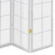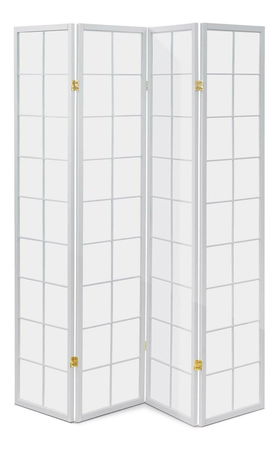 4-dielny voľne stojaci paraván s konštrukciou z masívneho smrekového dreva v bielom odtieni, lakovaný transparentným lakom a výplňou z bielej netkanej textílie. Plní nielen funkciu okrasnú, ale aj praktickú. Možno ho použiť ako zástenu alebo diskrétnu aj optickú deliacu priečku nielen v byte, ale aj v komerčných priestoroch. Vďaka skladacej konštrukcii a celkovej nízkej hmotnosti je možné ho bez problémov premiestňovať a manipulovať s ním. Kombinácia dreva a netkanej textílie pôsobí vzdušným dojmom, štýlovo sa dá paraván umiestniť do akokoľvek zariadeného interiéru. V každom si nájde zaslúžené miesto. Výška paravánu je 180 cm, šírka jedného dielu 44 cm, celková plná šírka je 174 cm. Hrúbka steny sú 2 cm. Steny paravánu sú k sebe pripevnené kovovými pomosadenými pántami. Celková hmotnosť je 6,5 kg.
