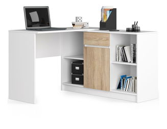 Rohový PC stolík Dasys VE 02 (dub wotan + biela) *bazár