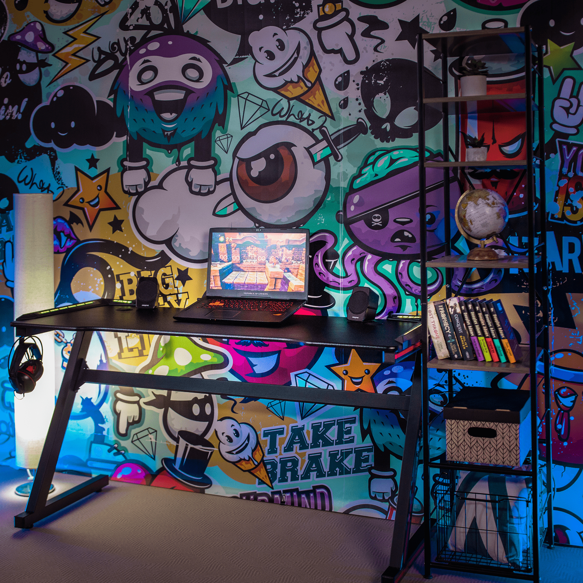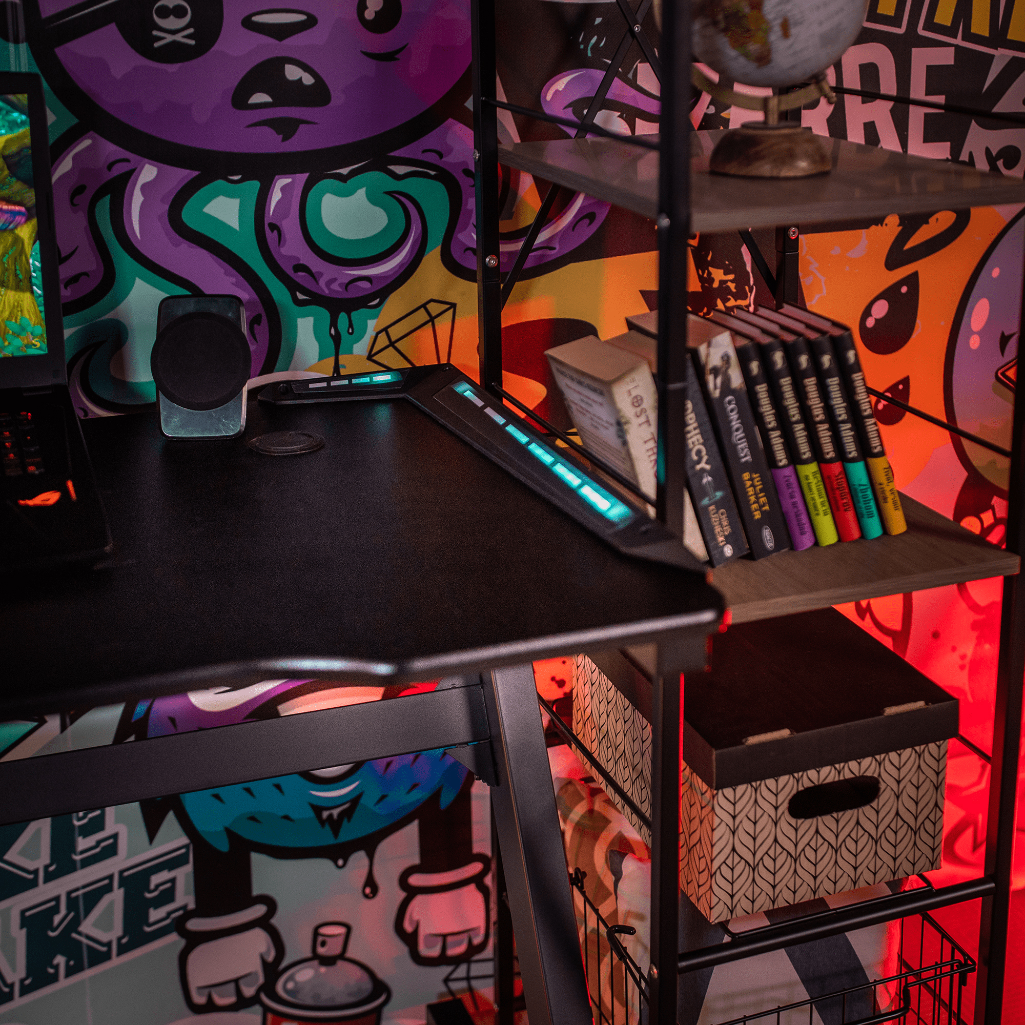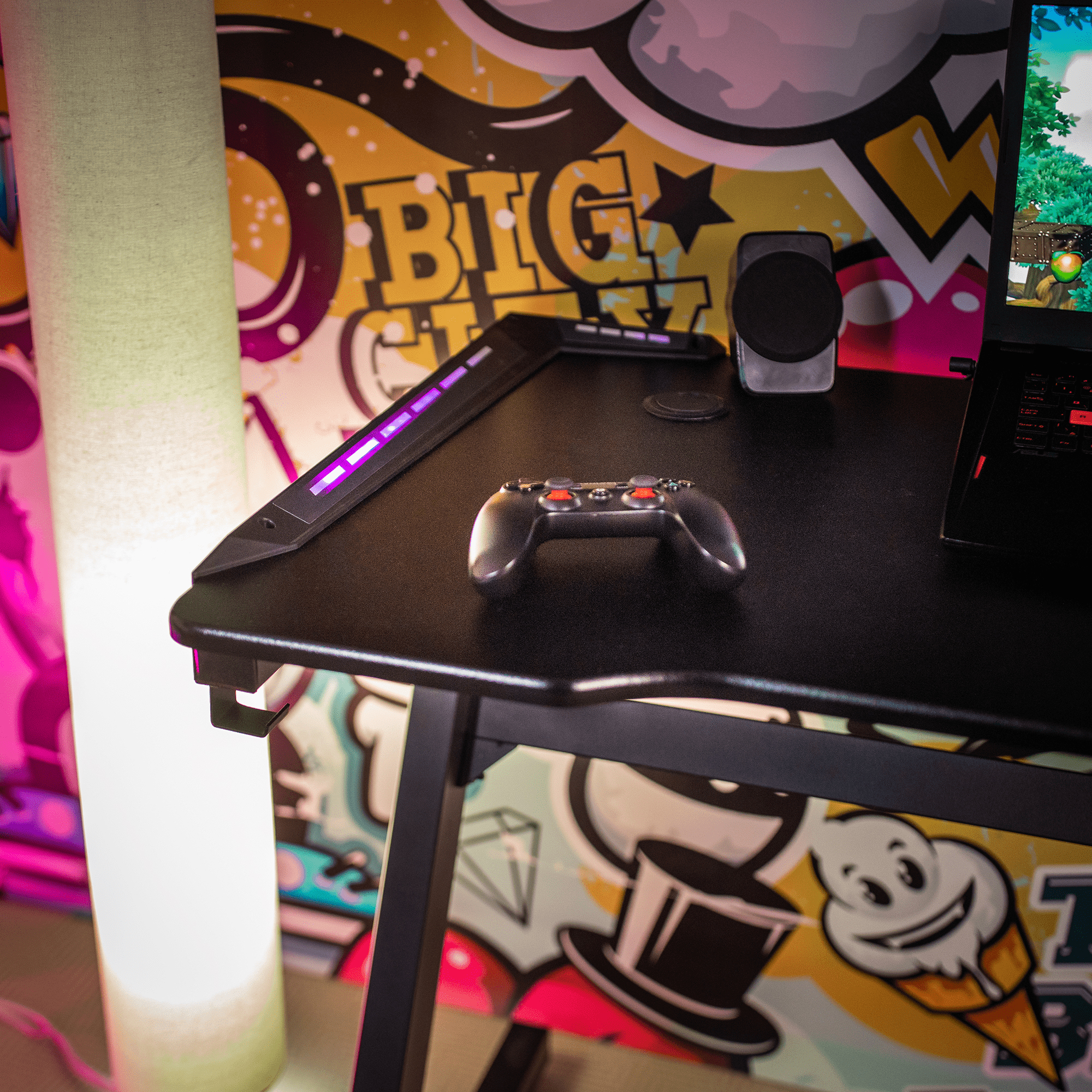 PC stôl Marcelene v čiernej farbe s výškou 75 cm a hĺbkou 60 cm je ideálny pre váš herný zážitok. Jeho tvar písmena Z umožňuje hráčovi pohodlné a nerušené hranie bez obmedzení. Na prednej hrane stolovej dosky sa môžete pohybovať smerom k stolu a získať tak výhodu nad súpermi. Stolová doska obsahuje dve zásuvky na káble a držiak na slúchadlá. Materiál stola zahŕňa kov, MDF a PVC fóliu. Tlak dosky je 15 mm a statická nosnosť je až 80 kg. Povrchová úprava stola je zabezpečená práškovým náterom. Stôl je dodávaný v demonte a jeho montáž je jednoduchá a rýchla. S týmto herným stolom Marcelene získate nevyhnutný nástroj pre víťazstvo v každej počítačovej hre.