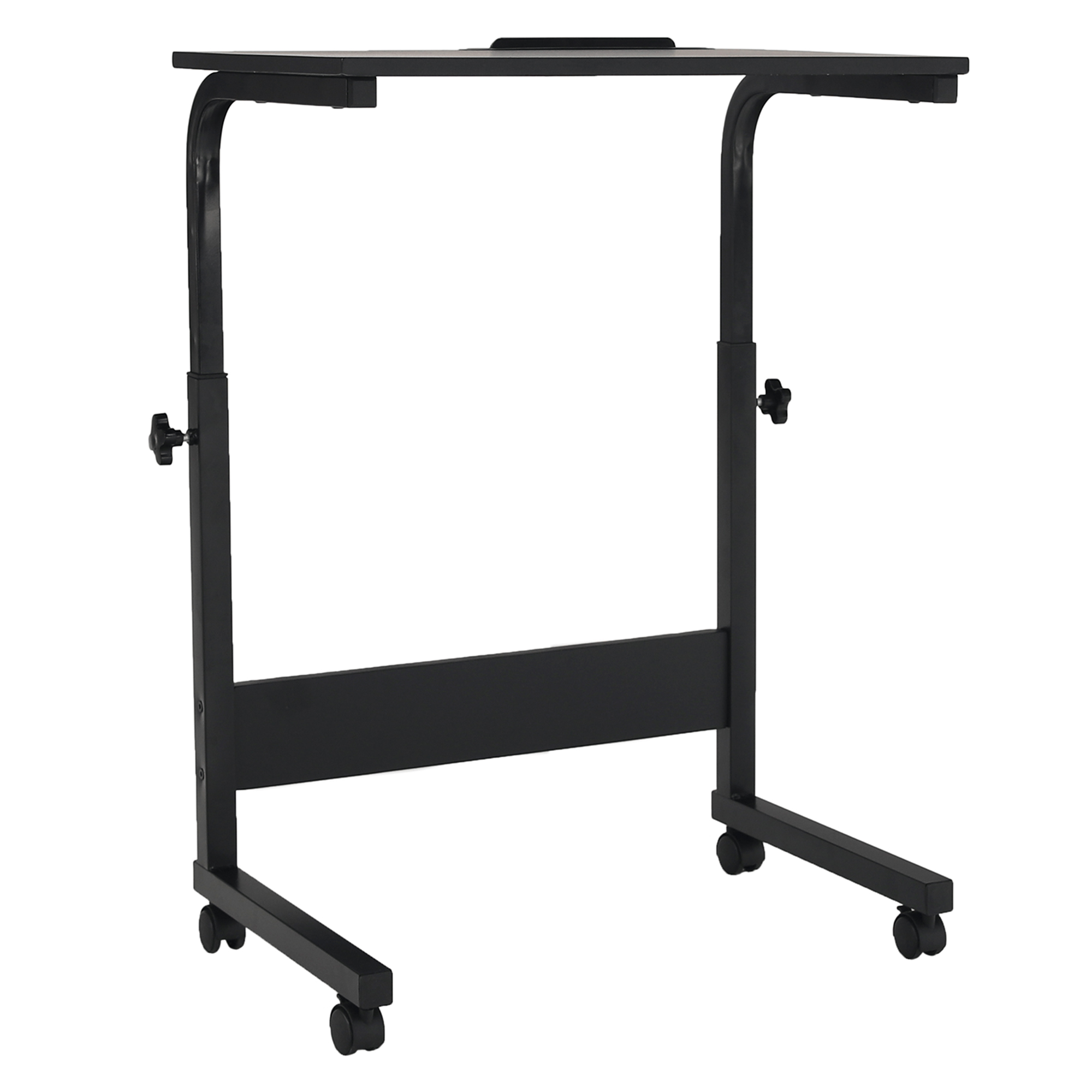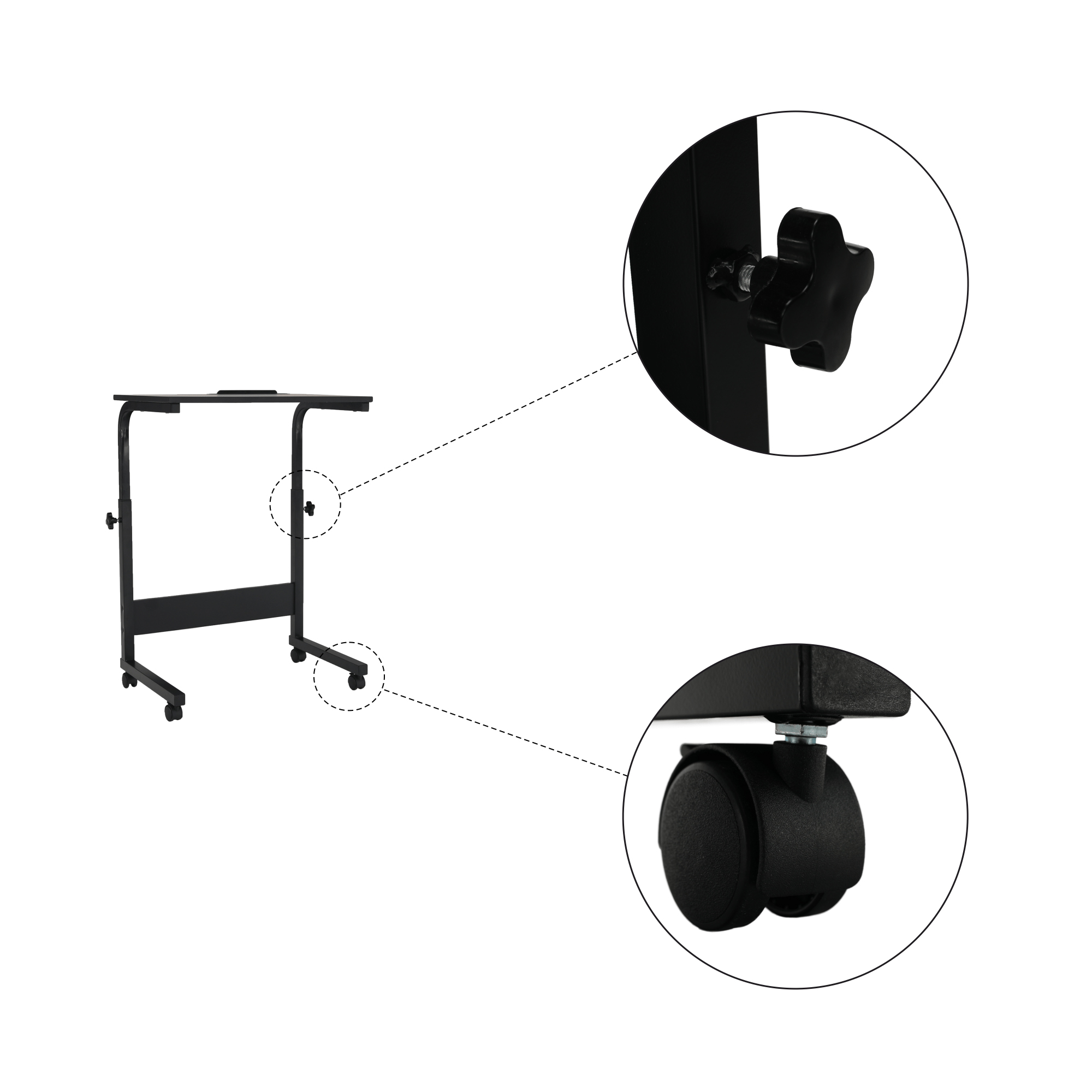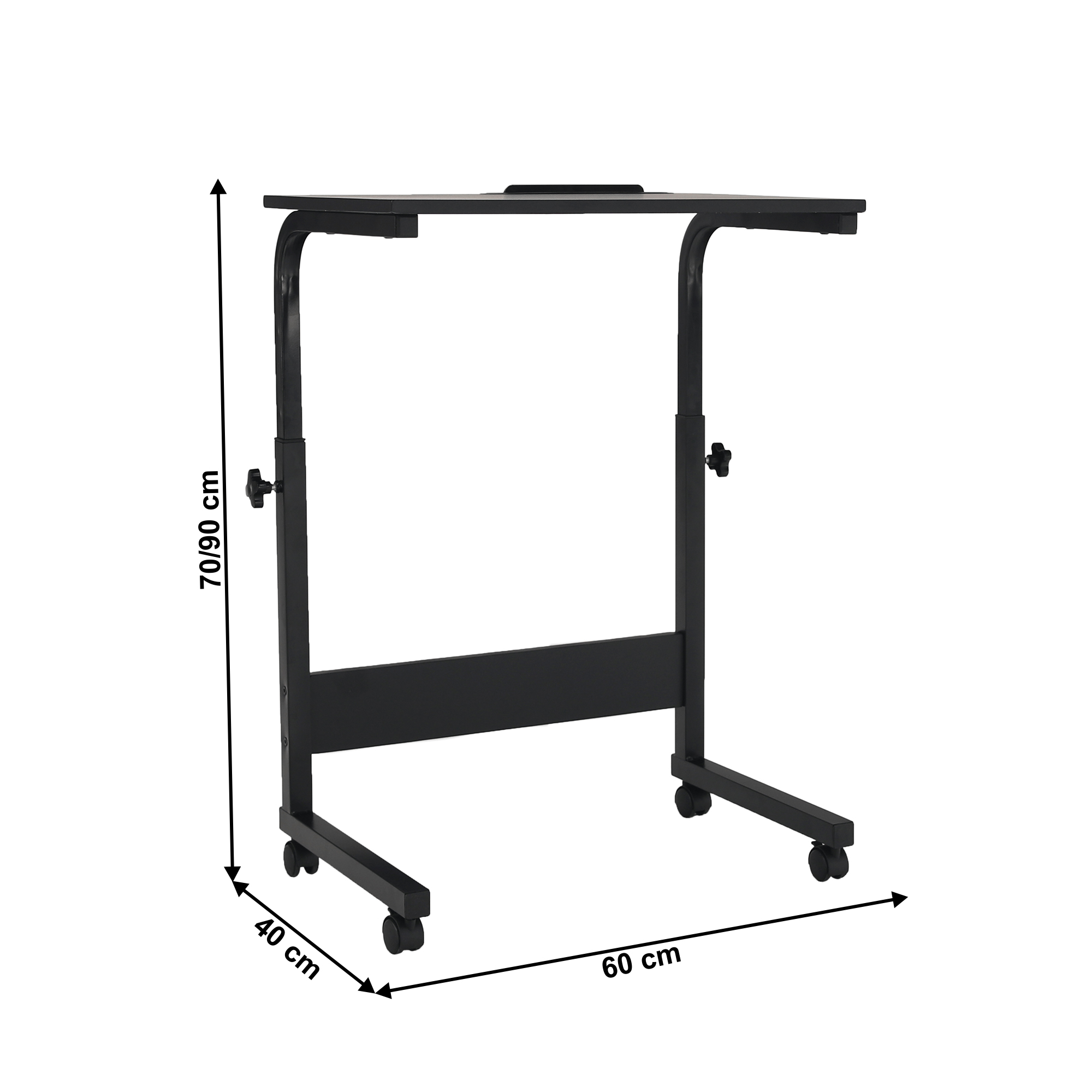 PC stôl s kolieskami Jadar (čierna) je praktický a pohodlný stôl pre používateľov počítačov. Výška stola môže byť nastavená medzi 70-90 cm a je vybavený dvomi brzdami pre bezpečné použitie. Stôl je vyrobený z kvalitných materiálov ako MDF s PVC fóliou a kovom. Je tiež vybavený zárezom na tablet a jeho pohyblivosť umožňuje používateľom pohodlne presúvať ho po miestnosti. Vyskúšajte tento stôl a už nikdy nebudete musieť trpieť nepríjemnou pozíciou pri práci na počítači.