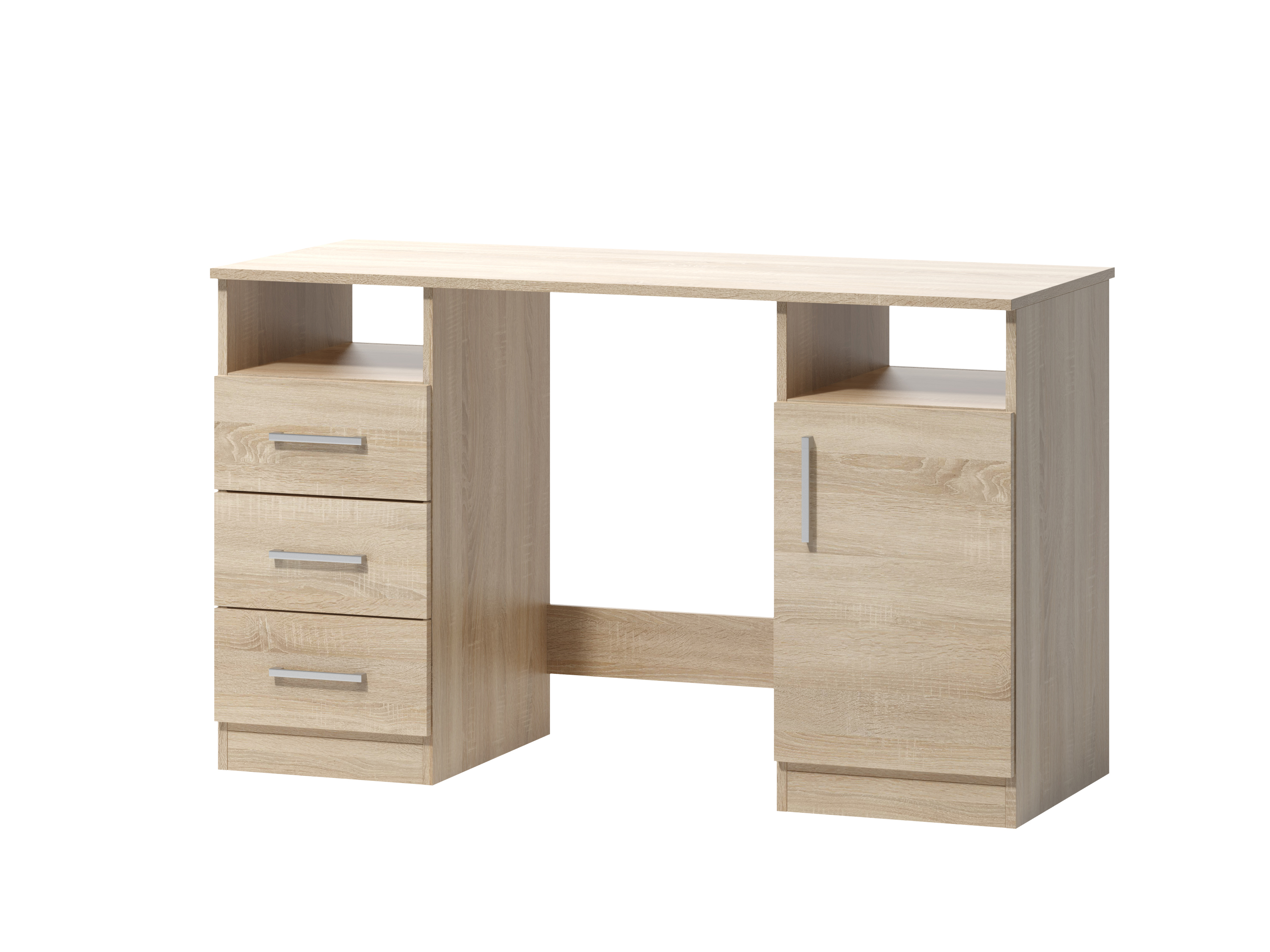 Zariaďte si pracovňu, či študentskú izbu týmto štýlovým PC stolíkom. Hodí sa do pracovne, či študentskej izby. Určite oceníte jeho funkčné riešenie úložného priestoru. V ľavej časti sa nachádza otvorená polička a tri zásuvky. V pravej časti je otvorená polička a skrinka.