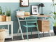 Tento klasický písací stôl bude skutočným skvostom v každom interiéri zariadenom v škandinávskom štýle. Jeho rám je vyrobený z robustnej ocele pokrytej bielou práškovou farbou pre dlhotrvajúci efekt. Vrchná doska z MDF je potiahnutá papierovou dyhou v imitácii dreva v svetlom odtieni. Súčasťou je odkladacia zásuvka s pomalým zatváraním a skrinka na všetky vaše spisy, poznámkové bloky a písacie potreby.