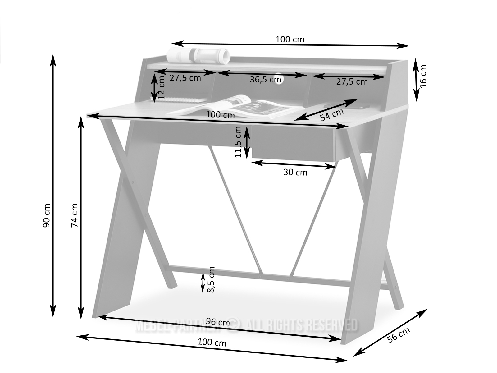 obdĺžniková doska, s hornou policou, so zásuvkami