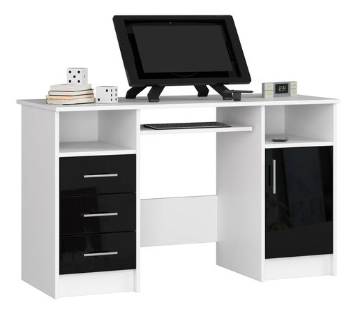 PC stolík Aziza (biela + čierny lesk) je skvelým doplnkom do vašej pracovne alebo obývačky. S výškou 74 cm, šírkou 124 cm a hĺbkou 52 cm poskytuje dostatok miesta na usporiadanie vášho počítača, monitora a ďalších potrebných príslušenstiev. Jeho moderný dizajn v kombinácii bielej a čiernej lesklej farby pridáva štýlový vzhľad vášmu interiéru. Stolík je vyrobený z kvalitného materiálu, čo zaručuje jeho pevnosť a odolnosť. Okrem toho má praktické úložné priestory, kde môžete uschovať dokumenty, knihy a ďalšie veci. PC stolík Aziza je ideálnou voľbou pre tých, ktorí hľadajú funkčný a elegantný nábytok pre svoje pracovné prostredie.