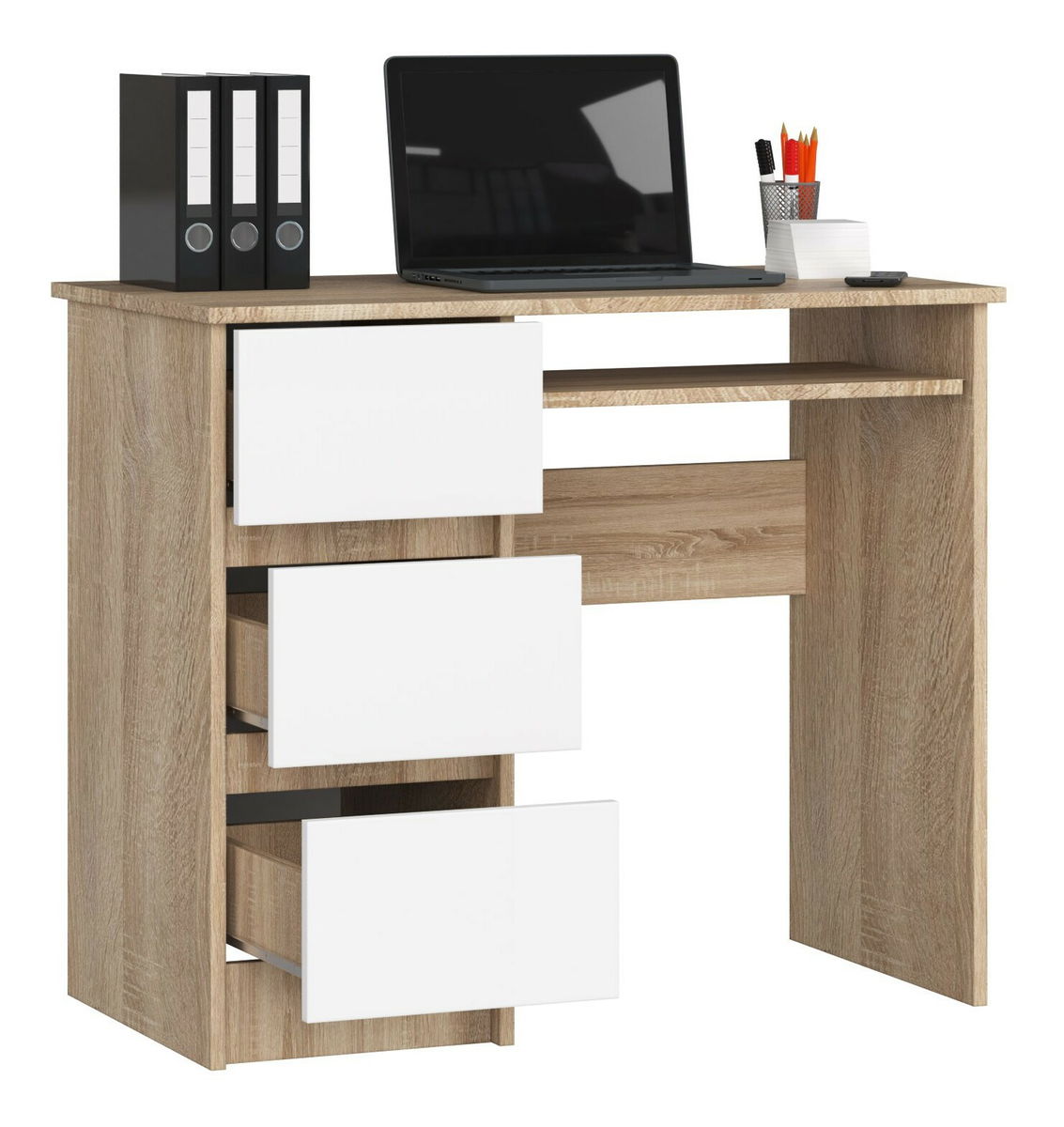 ZobraziťPC stolík Benicio je praktický a štýlový kus nábytku, vhodný pre každého nadšeného počítačového používateľa. Vyrobený z kvalitného dubu sonoma a bielenej farby, tento stolík je nielen pekný, ale tiež odolný a stabilný. S výškou 77 cm, šírkou 90 cm a hĺbkou 50 cm poskytuje dostatok priestoru pre váš počítač, klávesnicu, monitor a ďalšie príslušenstvo. S funkcionalitou a eleganciou je PC stolík Benicio ideálnym doplnkom pre váš domáci kancelársky priestor.