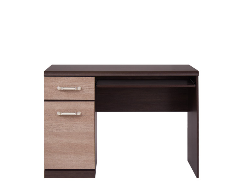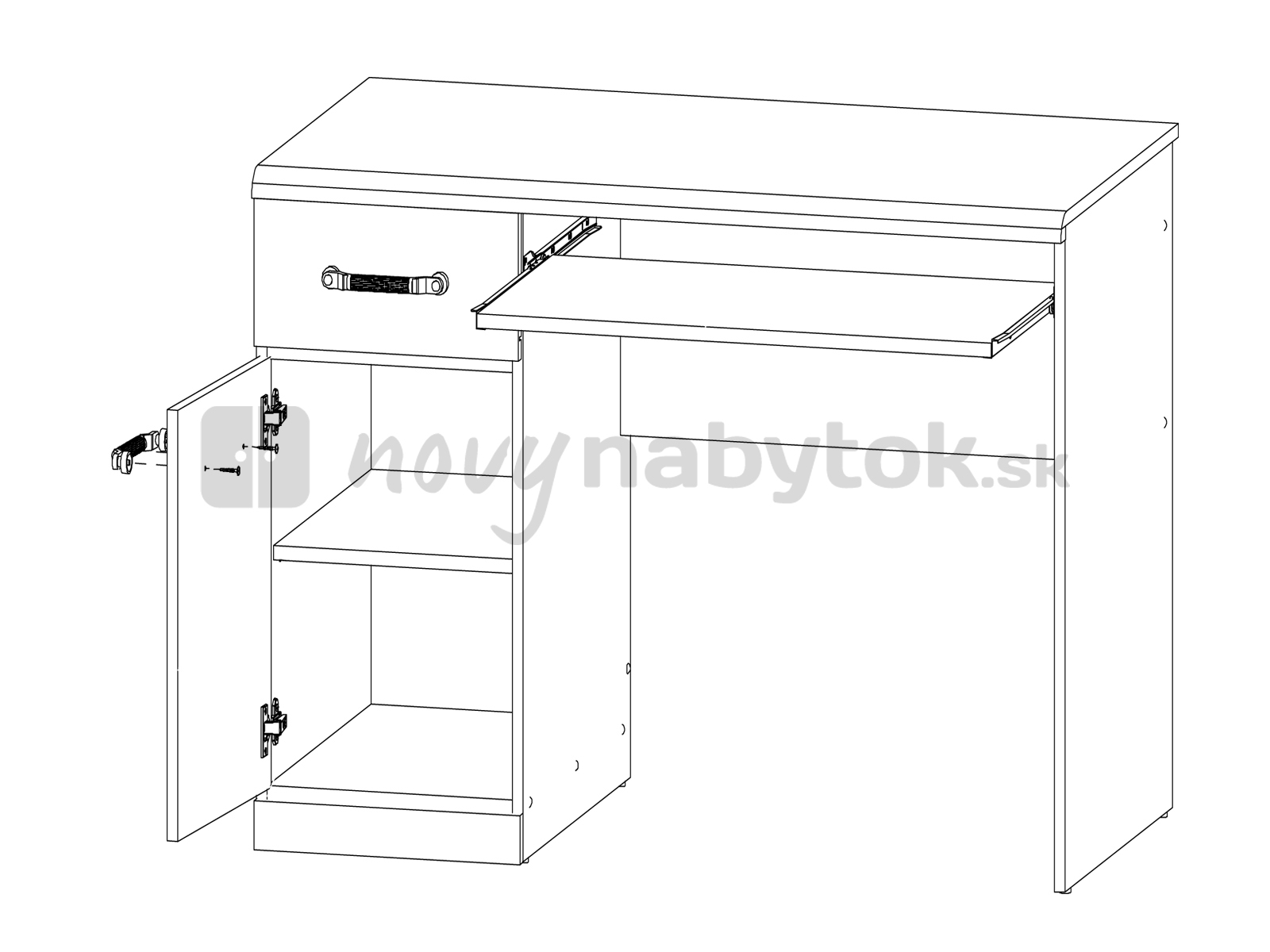 Praktický PC stolík vhodný najmä do študentských alebo detských izieb. V jeho ľavej časti sa nachádza zásuvka a skrinka. Obe majú širšie kovové úchyty. PC stolík má výsuvnú policu pod klávesnicu.