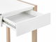 Pomocou tohto bieleho písacieho stola dodáte svojej domácej kancelárii škandinávsku atmosféru. Je vyrobený z odolnej a ľahko udržiavateľnej drevotrieskovej dosky, nevyžaduje si každodennú údržbu a aj napriek tomu si zachová svoj jedinečný vzhľad. Okrem toho, že má dlhú životnosť, je vybavený aj priestrannou zásuvkou, do ktorej si budete môcť odložiť dokumenty a iné dôležité predmety. Spestrením celého dizajnu je sklenená stolová doska, ktorá púta pozornosť a stolu dodáva moderný nádych.