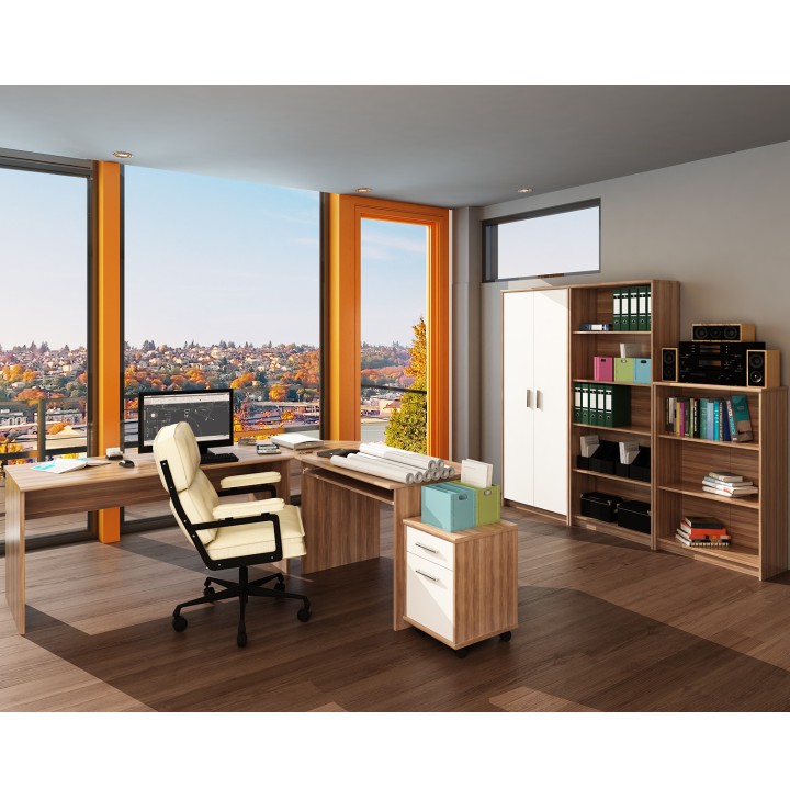 PC stolík, ktorý má pod pracovnou doskou výsuvnú dosku na uloženie klávesnice. V prípade potreby sa pod neho môže umiestniť skrinka na kolieskach Jove 07.