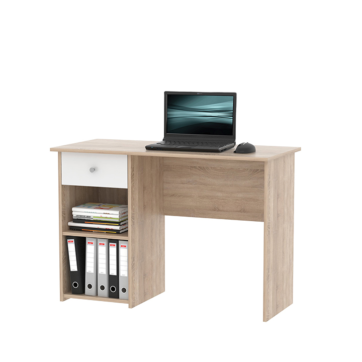 PC stôl KARLIS dnes už síce ničím nepripomína prastaré masívne písacie stoly, je však oveľa praktickejší a v odľahčenom dizajne. Vyrobený je z kvalitnej DTD laminovanej vo farebnom prevedení dub sonoma v kombinácií s bielou. Stôl disponuje jednou praktickou zásuvkou a otvoreným regálom, kde si môžete odložiť všetko potrebné. Či už práca, domáce úlohy alebo štúdium, za PC stolom KARLIS vám všetko pôjde od ruky.