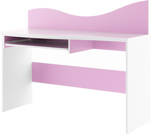 Štýlový a jednoduchý pracovný stôl v dvojfarebnom prevedení. Výsuvná doska pre klávesnicu ho predurčujú na použitie s počítačom. Do pozornosti dávame inštaláciu v sérii s iným produktom, nakoľko vlnovka na vrchu stola kopíruje tvar vlnovky použitej zospodu závesnej police rady Mario pod označením M-11.