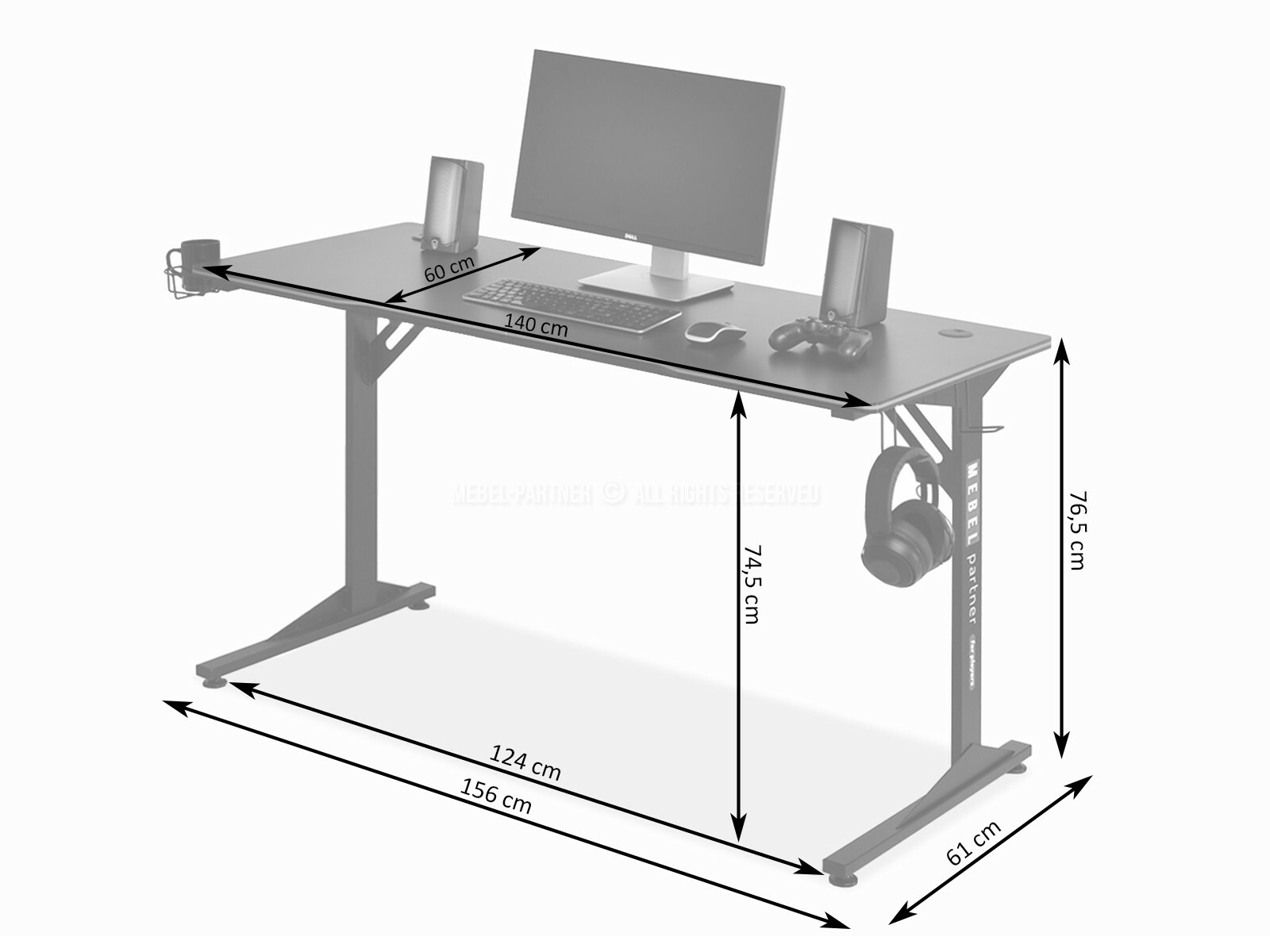 PC stolík Matts 140 (biela + čierna)