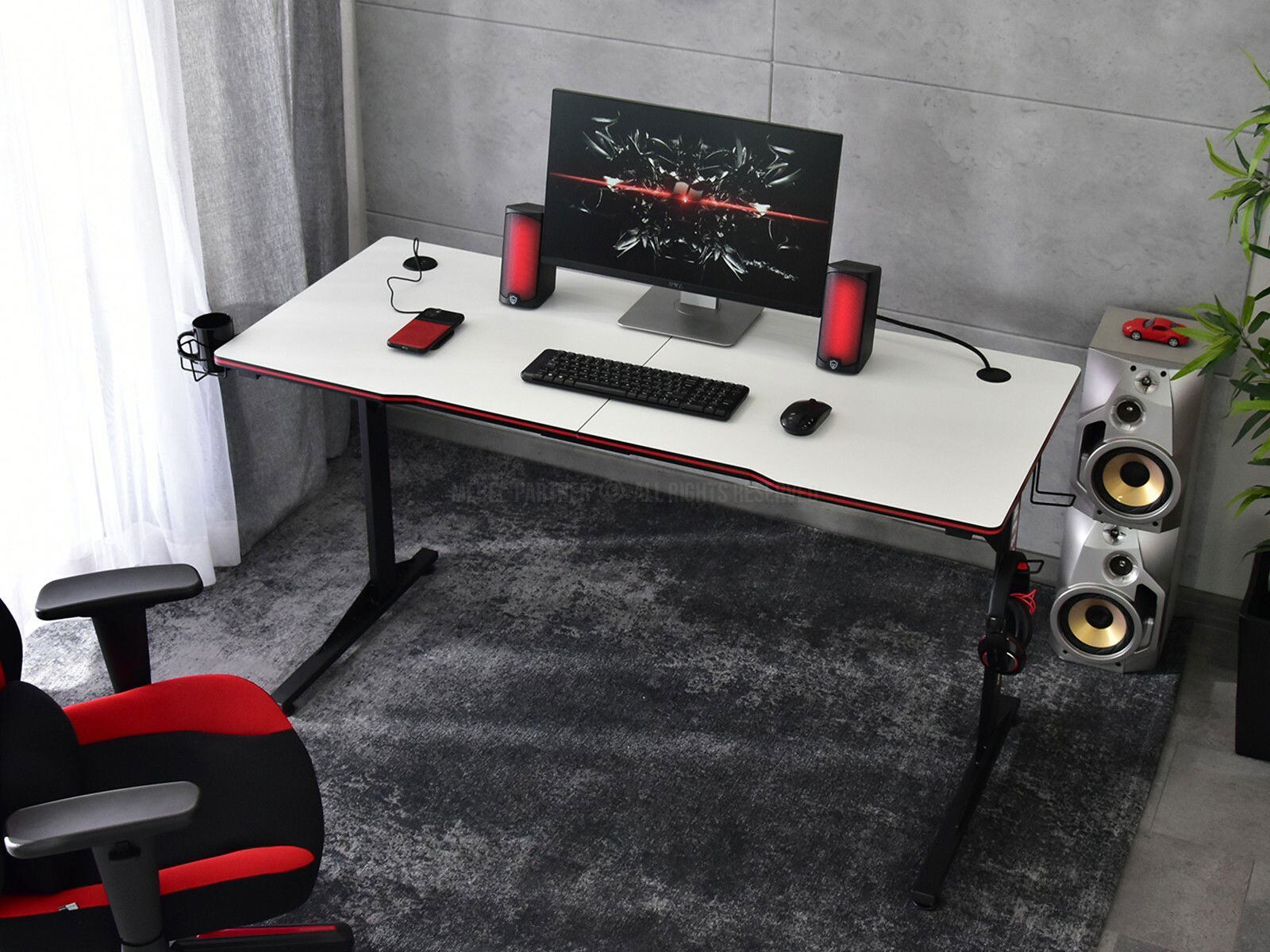 obdĺžnikový vrch, USB, držiak na pohár, 2 vešiaky, káblová priechodka, organizér na káble