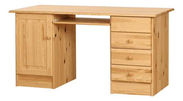 PC stolík s úložným priestorom po oboch stranách. Vľavo je skrinka s poličkou a vpravo sa nachádzajú štyri zásuvky. Pod pracovnou doskou je výsuvná plocha pre klávesnicu.