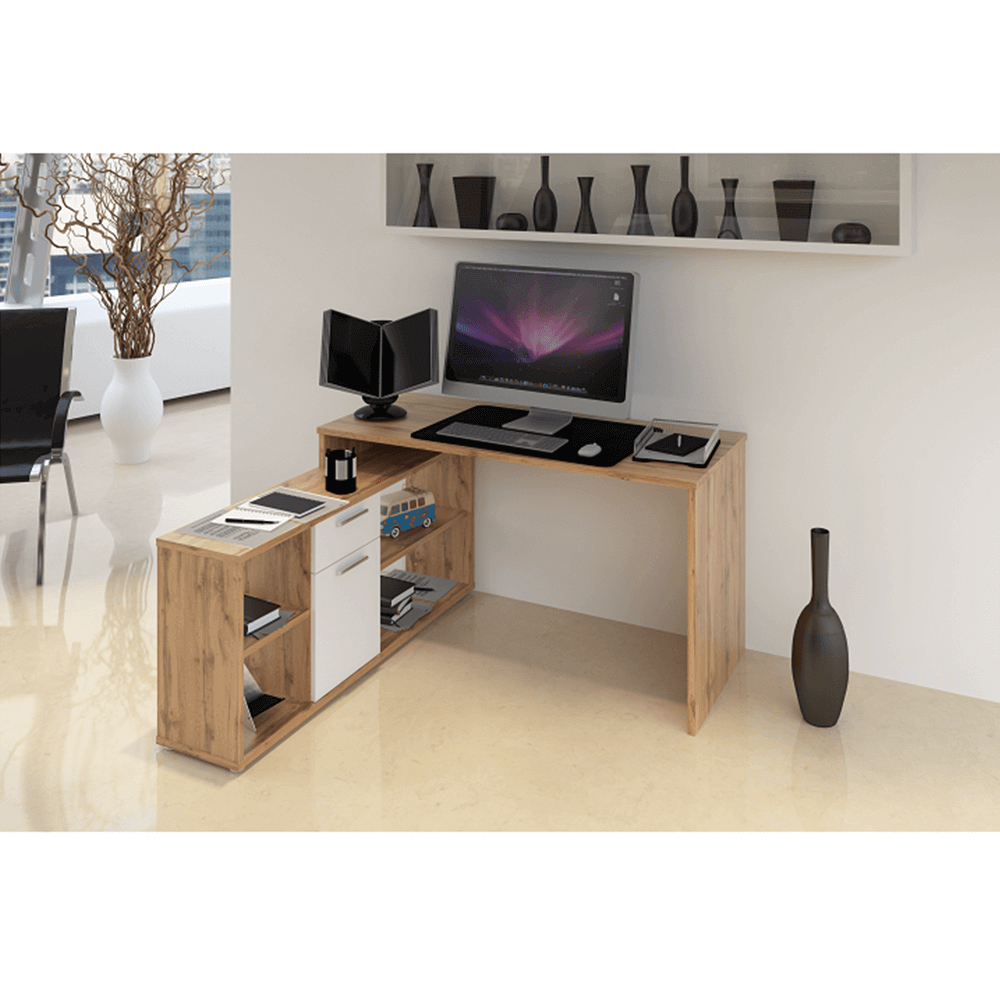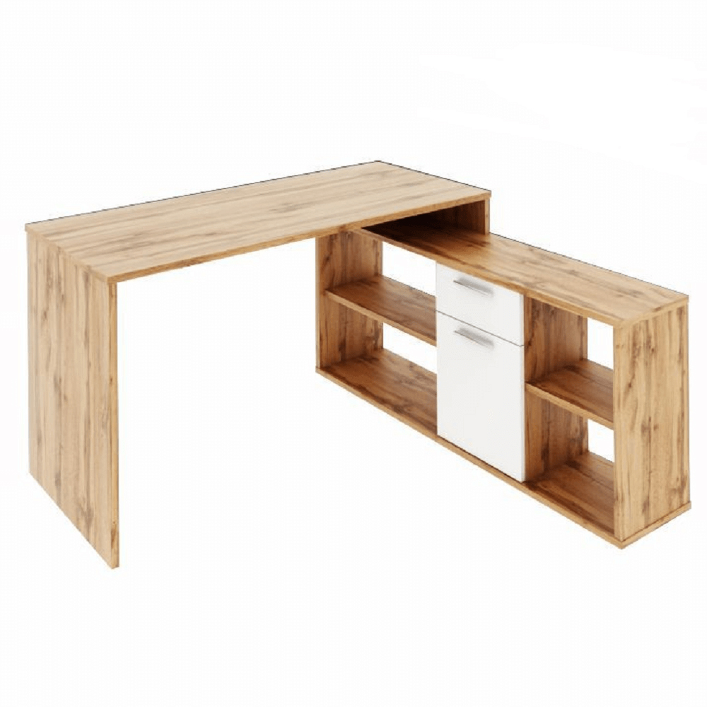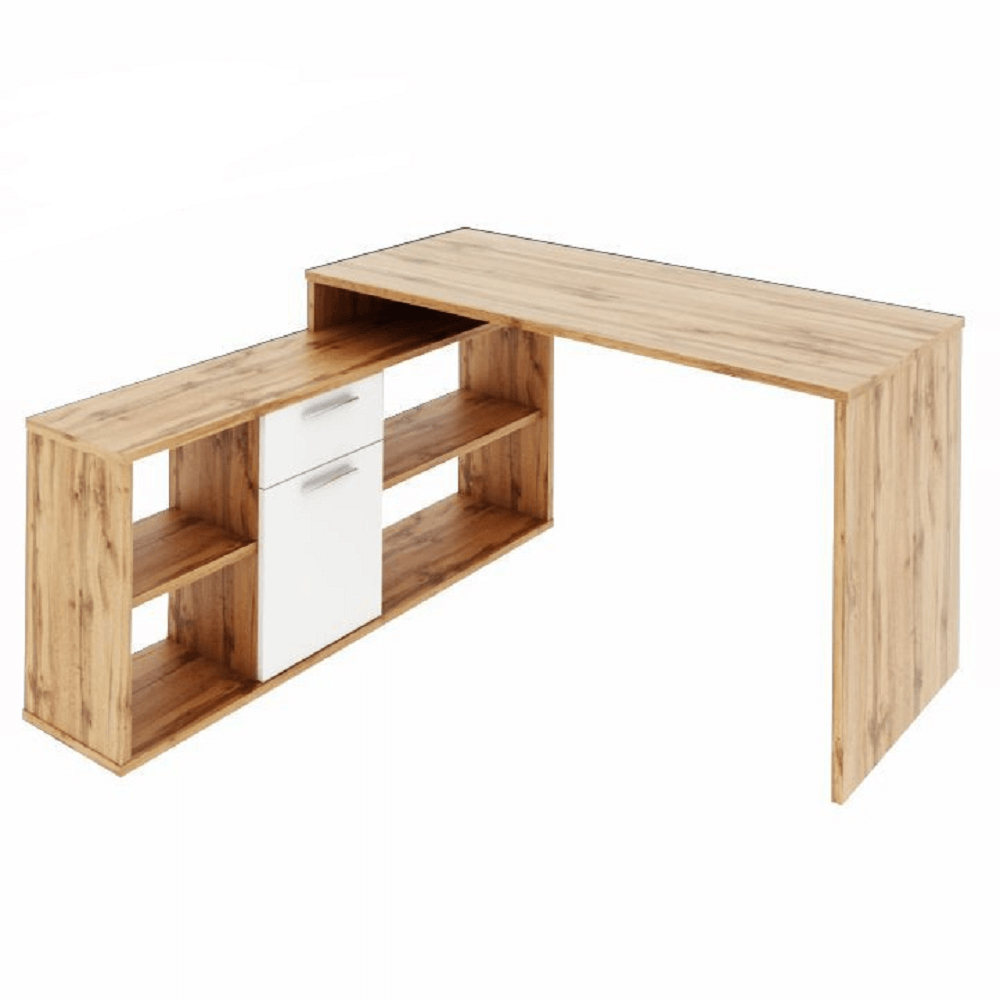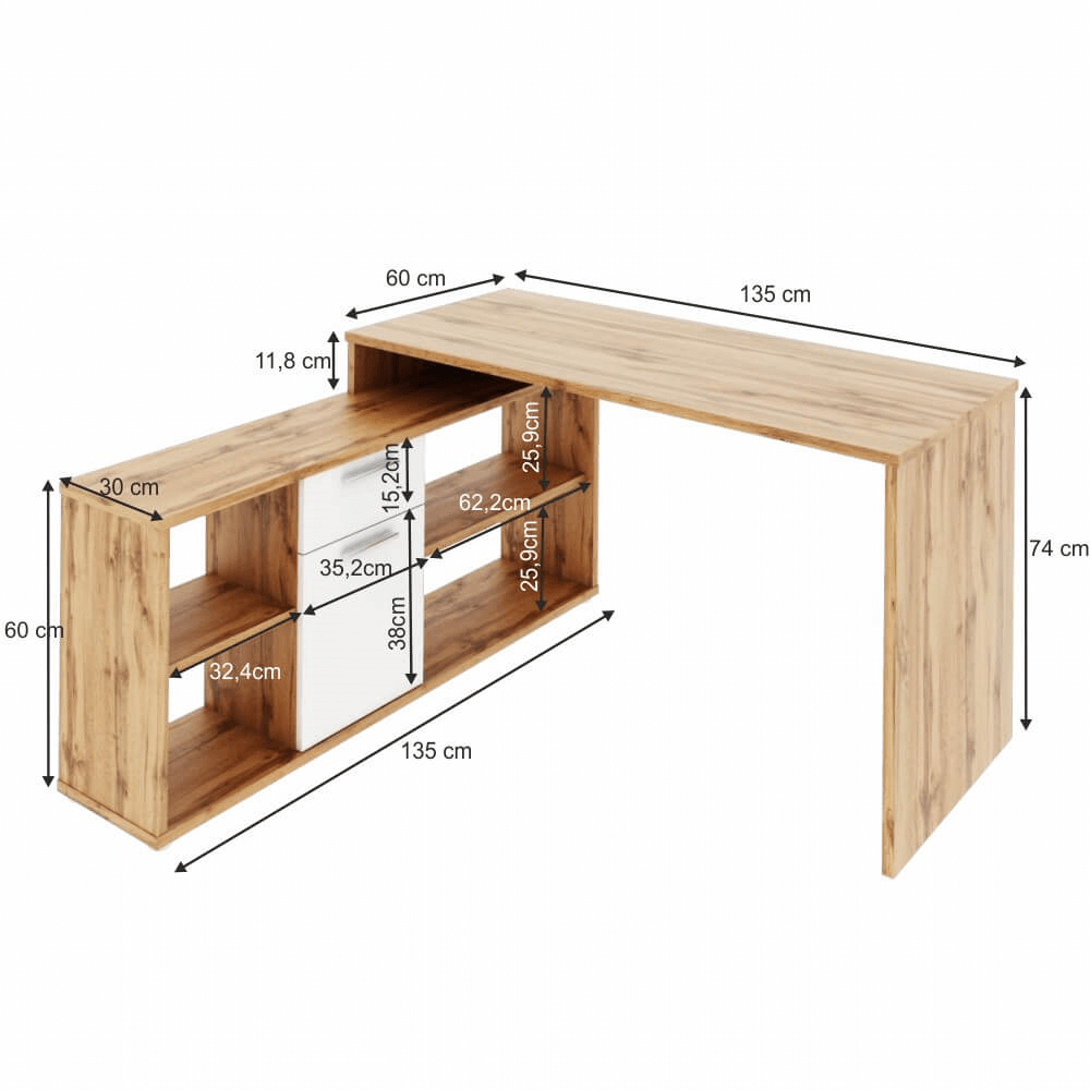 PC stolík Norrix (dub wotan + biela) je praktický a univerzálny nábytok, ktorý môžete poskladať na pravú alebo ľavú stranu. Bočná časť stolíka je vybavená skrinkou, zásuvkou a poličkami, čo poskytuje dostatok priestoru pre vaše veci. Stolík je vyrobený z kvalitnej DTD laminovanej dosky s hrúbkou materiálu 16/22 mm. Hlavný stolík má rozmery 74x135x60 cm a prídavný stolík má rozmery 60x135x29,6 cm. Výrobok pochádza zo Slovenskej republiky. Celkové rozmery stolíka sú 135x135x74 cm a je dostupný v prevedení dub wotan/biela.