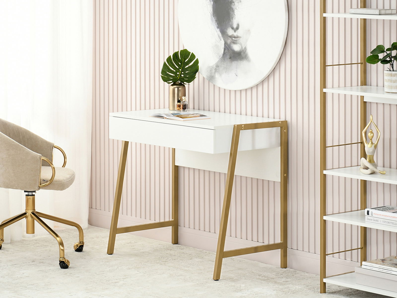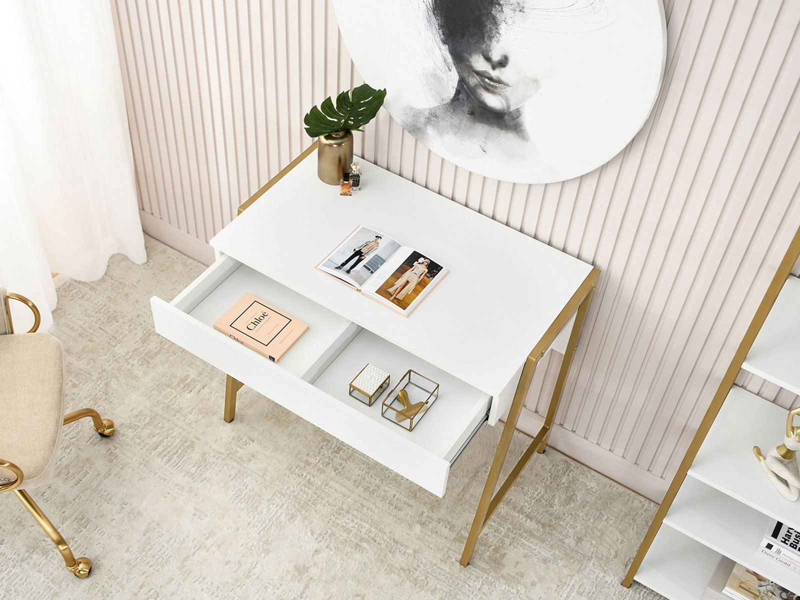 PC stolík Norsinimo (biela + zlatá)