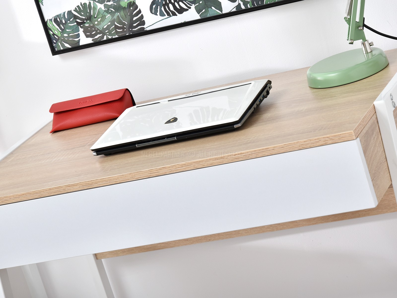PC stolík Norway: Kombinácia dubového dekoru a bielej farby