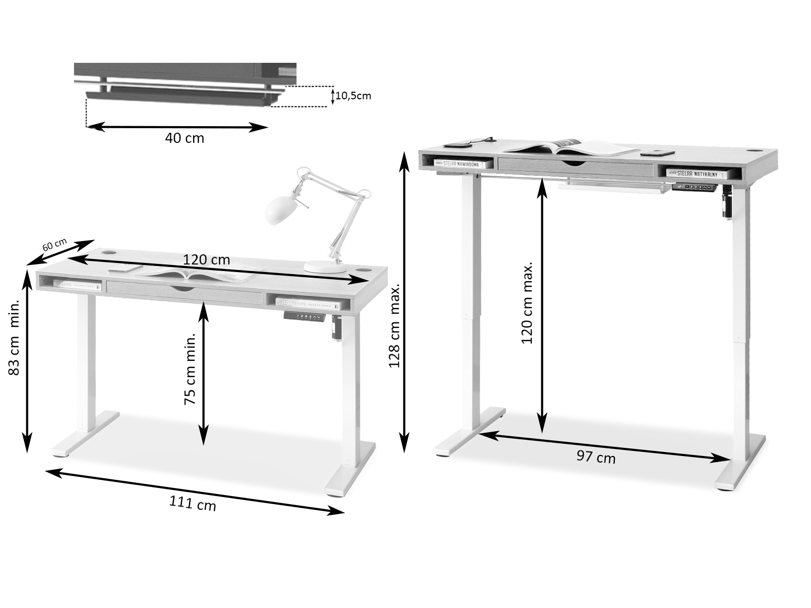 obdĺžniková doska, s otvorenými policami, so zásuvkou, s pomocnou policou pod doskou, nastaviteľná Výška