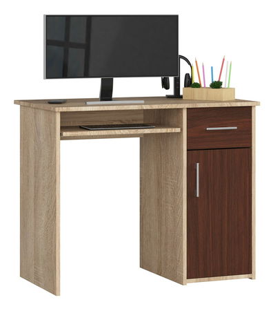 PC stolík Padma je ideálnym doplnkom pre váš domáci kancelársky priestor. S jeho výškou 74 cm, šírkou 90 cm a hĺbkou 50 cm ponúka dostatok miesta pre váš počítač, monitor a ďalšie potrebné veci. Vyhotovený z kvalitného dubu sonoma a wenge, tento stolík je nielen praktický, ale aj elegantný. Jeho pevná konštrukcia zaručuje stabilitu a dlhú životnosť. PC stolík Padma je skvelou voľbou pre každého, kto hľadá spojenie funkčnosti a štýlu pre svoje pracovné prostredie.