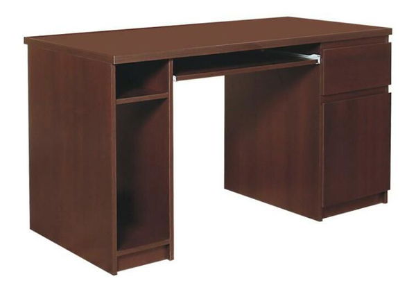 PC stolík s úložným priestorom po oboch stranách. Vľavo ponúka regál pre uloženie skrinky od stolového počítača, vpravo zásuvku a úložný priestor uzavretý dvierkami. Pod hornou pracovnou doskou sa nachádza praktická výsuvná doska pre uloženie klávesnice.