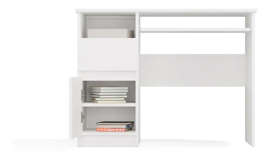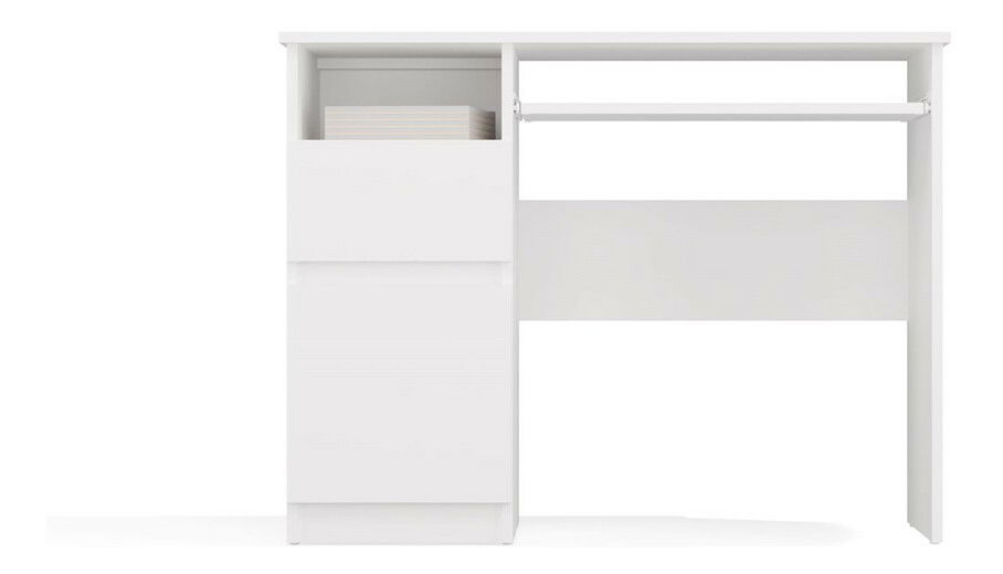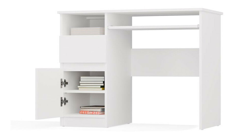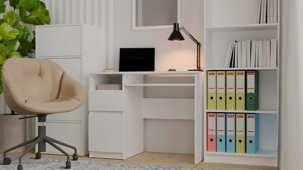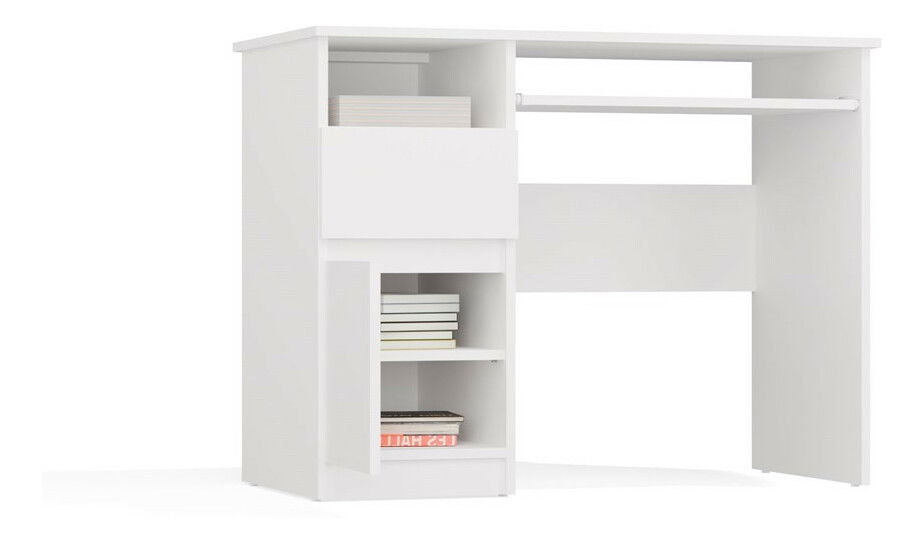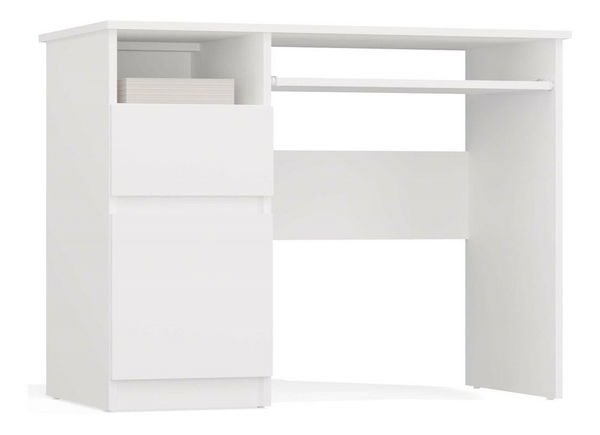 ZobraziťPC stolík Promovera 1 v elegantnej bielej farbe je ideálnym riešením pre moderné pracovné prostredie, či už doma alebo v kancelárii. Jeho praktická konštrukcia zahŕňa priestrannú šufľu, skrytú skrinku na uskladnenie a vysúvaciu poličku na klávesnicu, čo zabezpečuje optimálne využitie priestoru. S rozmermi 98,5 cm na šírku a 51 cm na hĺbku ponúka dostatok miesta pre laptop a ďalšie pracovné potreby. Tento PC stolík je vyrobený z kvalitnej laminovanej drevotriesky, čo zaručuje jeho dlhú životnosť a jednoduchú údržbu.