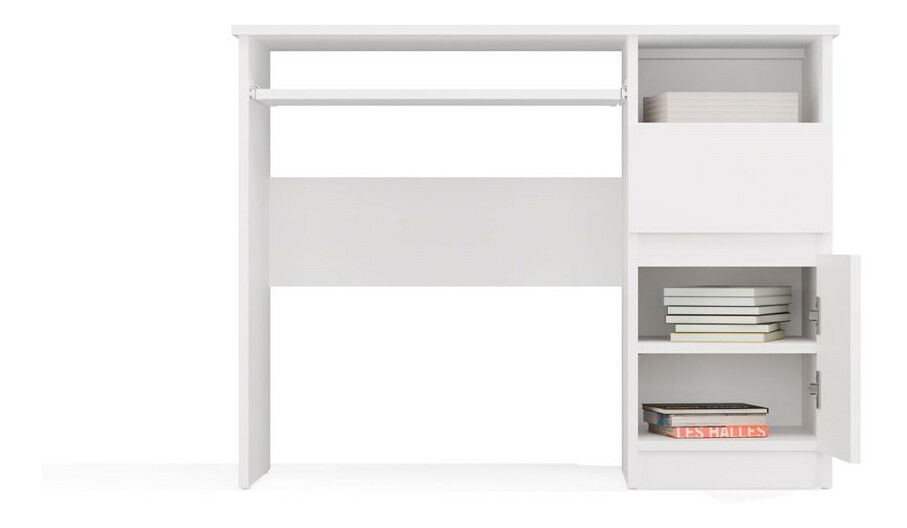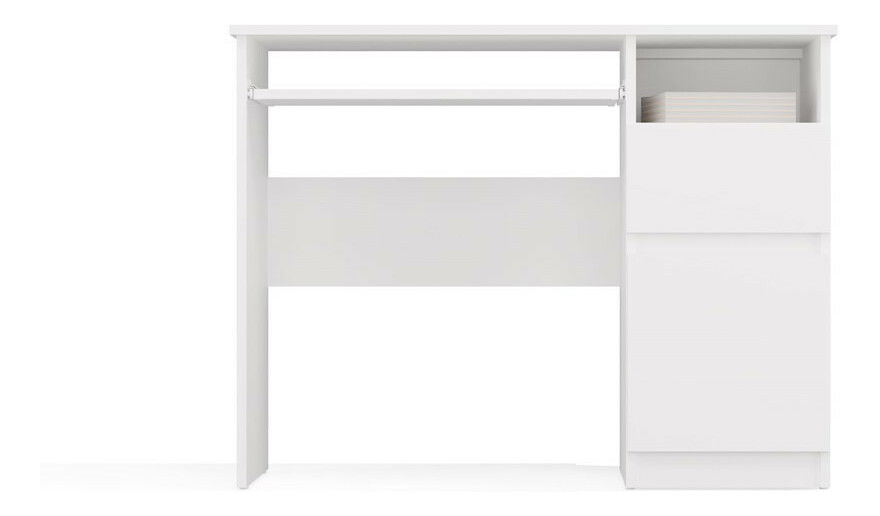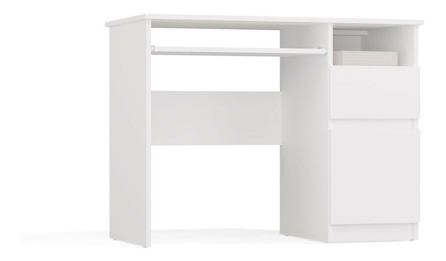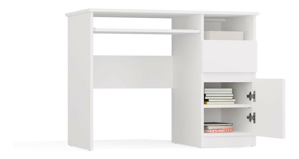 PC stolík Promovera 1 v elegantnej bielej farbe je ideálnym riešením pre moderné pracovné prostredie, či už doma alebo v kancelárii. Jeho praktická konštrukcia zahŕňa priestrannú šufľu a skriňu na uskladnenie, čo zabezpečuje optimálne využitie priestoru. Vysúvateľná polica na klávesnicu a minimalistický dizajn prispievajú k pohodlnému a efektívnemu pracovnému prostrediu. Korpus a fronty sú vyrobené z kvalitnej laminovanej drevotriesky, čo zaručuje dlhú životnosť a jednoduchú údržbu. Tento PC stolík je skvelou voľbou pre každého, kto hľadá funkčný a štýlový nábytok.